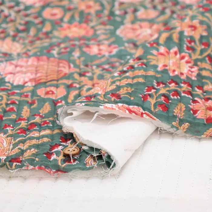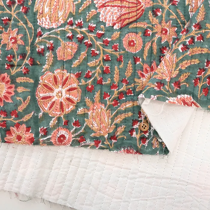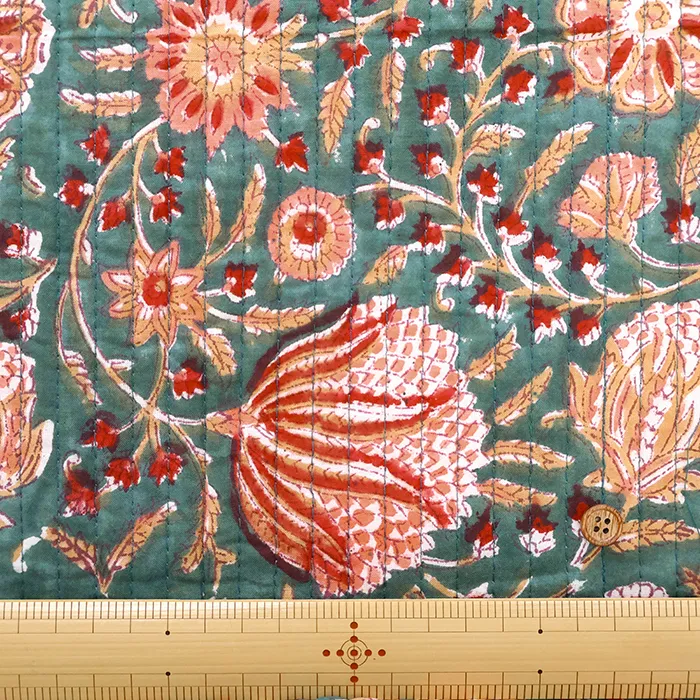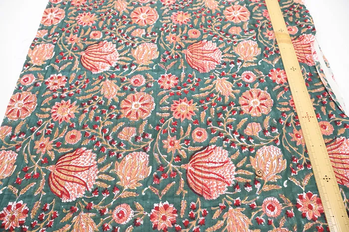 インドのハンドブロックプリント生地を表に使用した、キルト生地です。