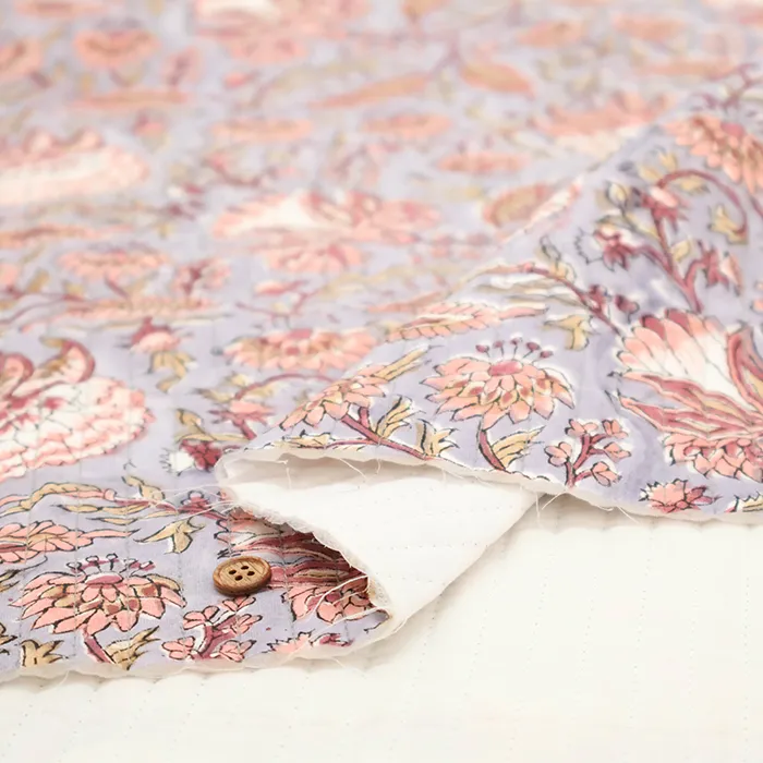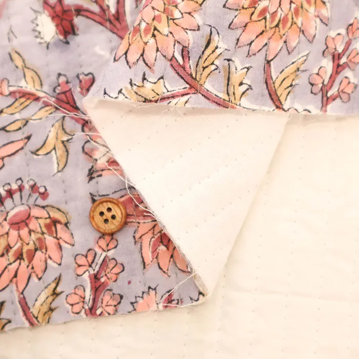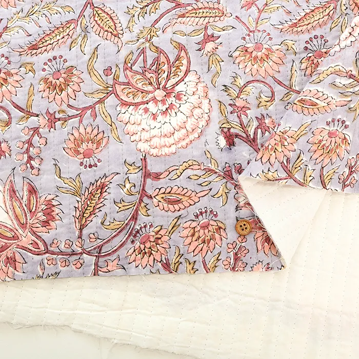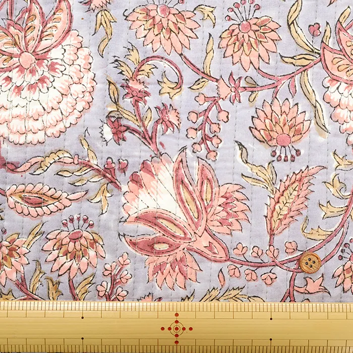 インドのハンドブロックプリント生地を表に使用した、キルト生地です。