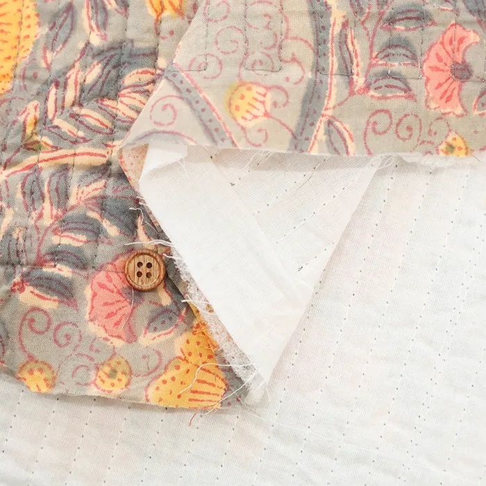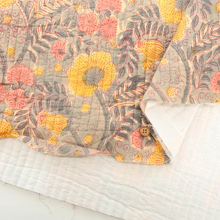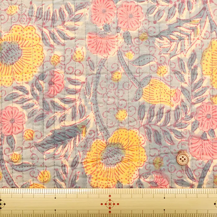 インドのハンドブロックプリント生地を表に使用した、キルト生地です。