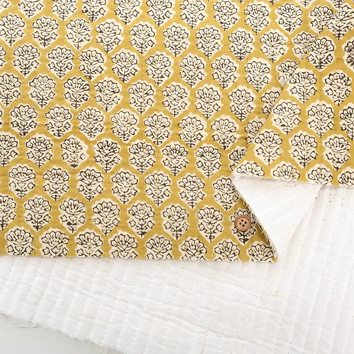 インドのハンドブロックプリント生地を表に使用した、キルト生地です。