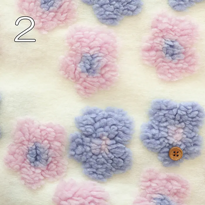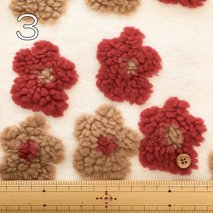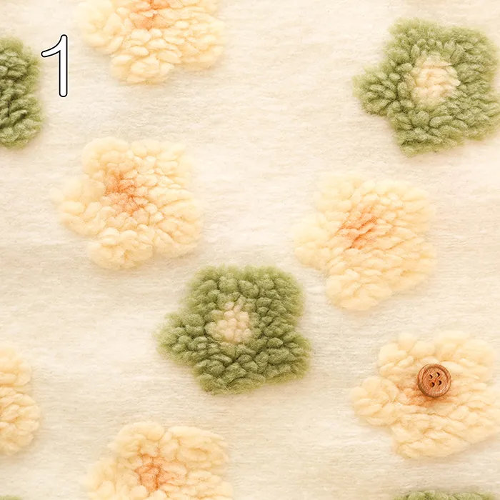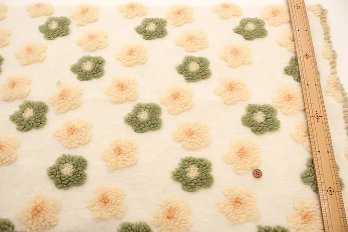 立体的なお花がついたジャガード織りのフリース生地です。