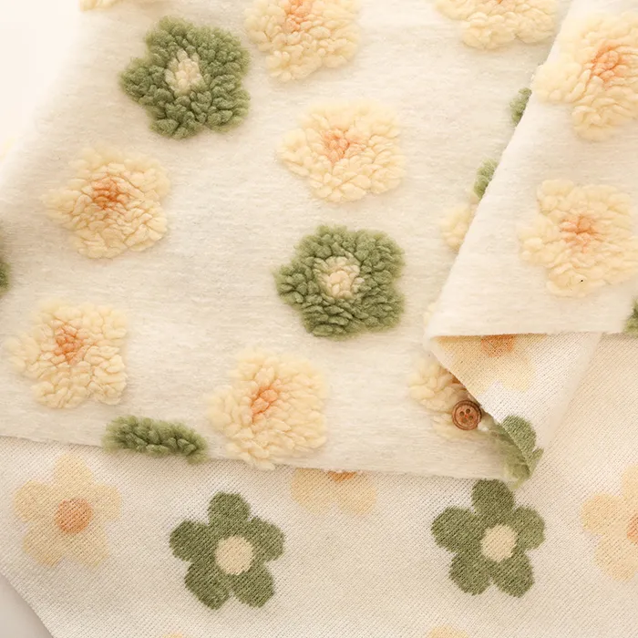 中国製 ポリエステルフリースジャガード生地 フラワー