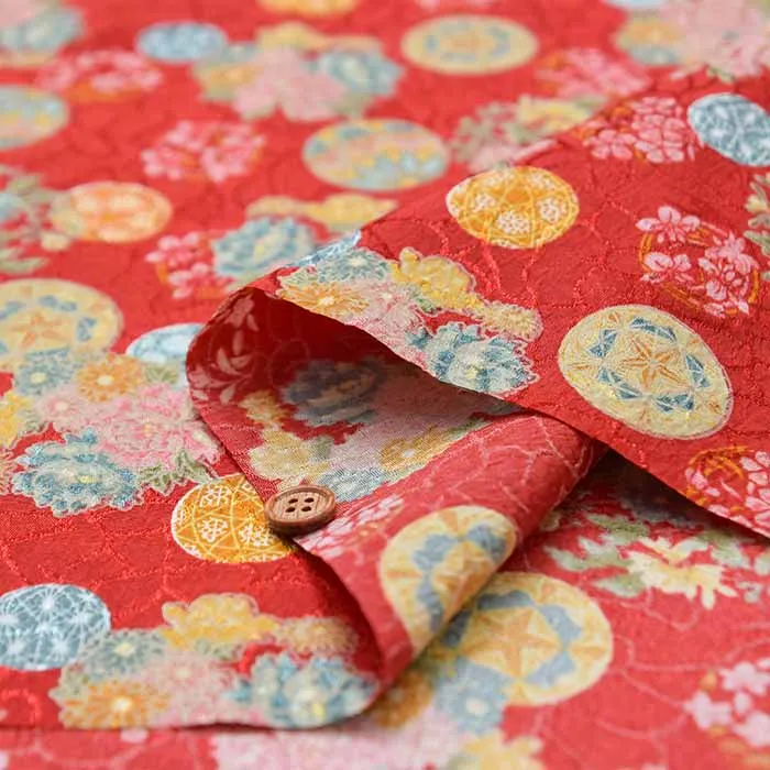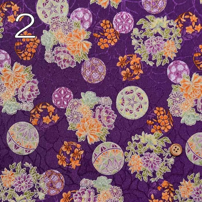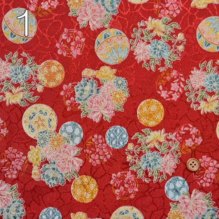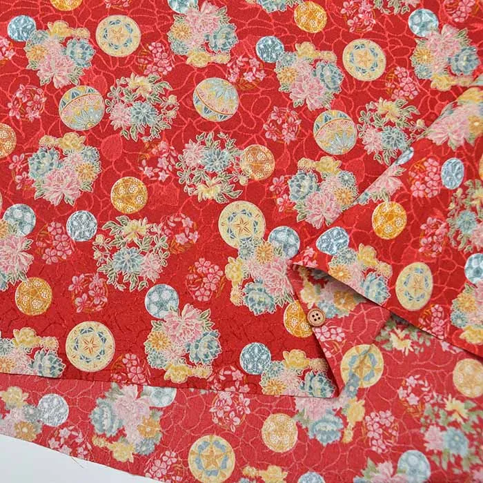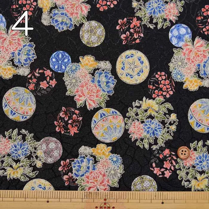 ポリエステルチリメンジャガードプリント生地 花鞠(1-061-B88634Z-3)