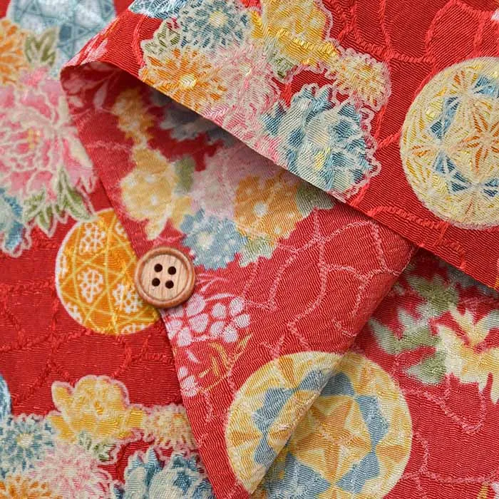 呉服などの着物で古くから利用されている伝統的な生地ですが、こちらは水やシワにも強いポリエステル素材のチリメンです。