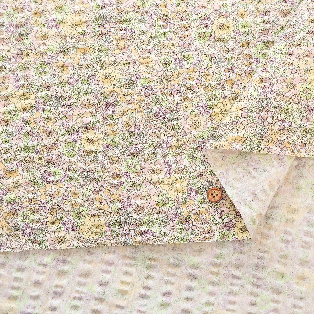 コットンリップルプリント生地 フラワー