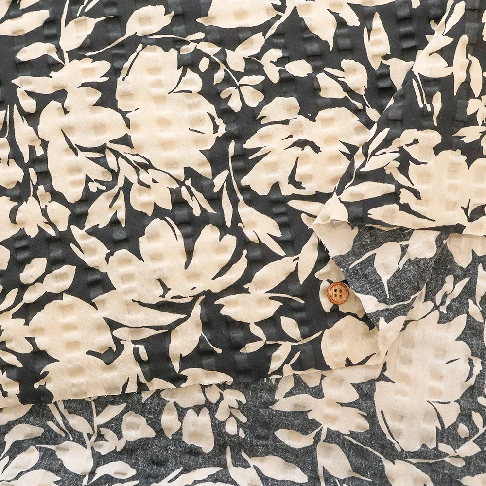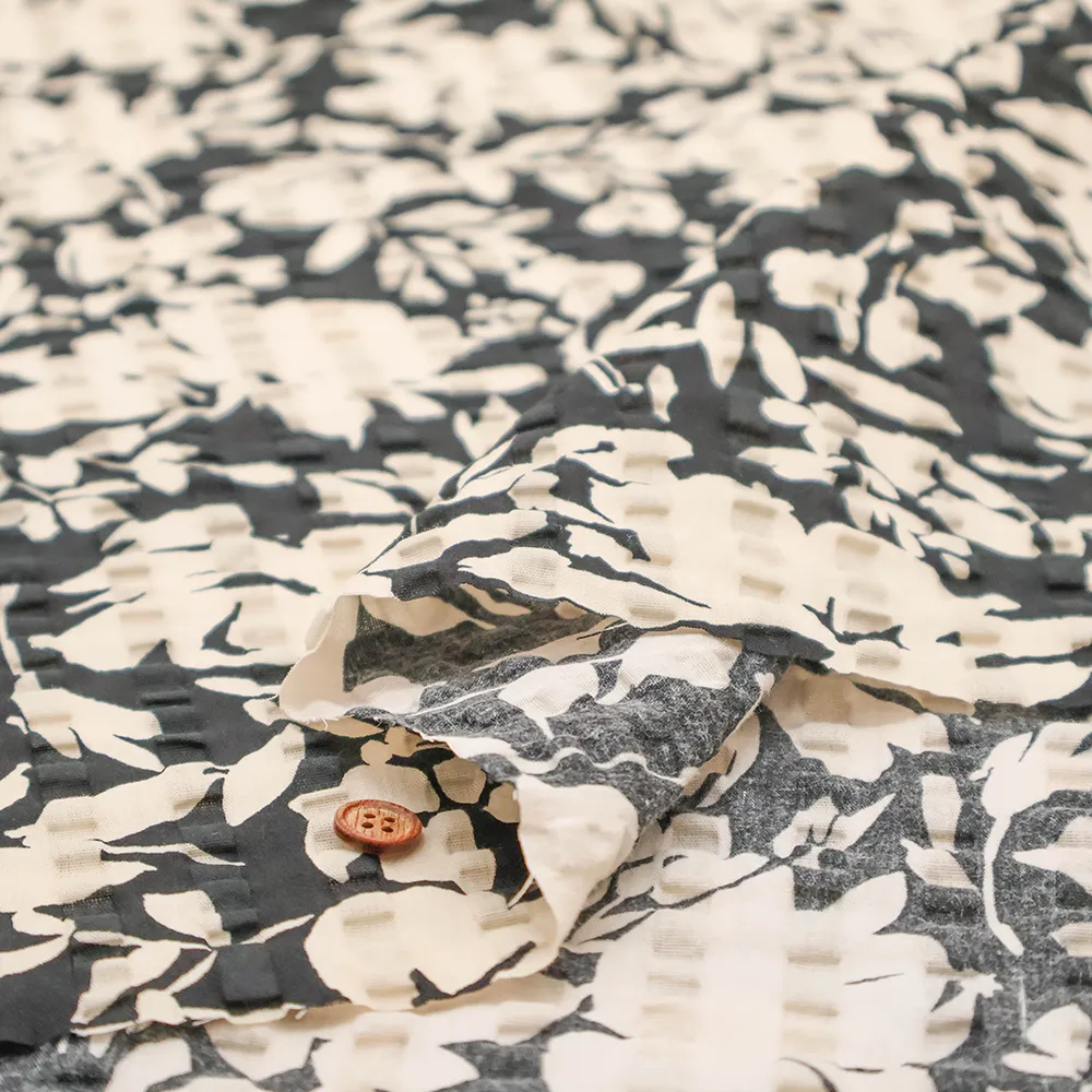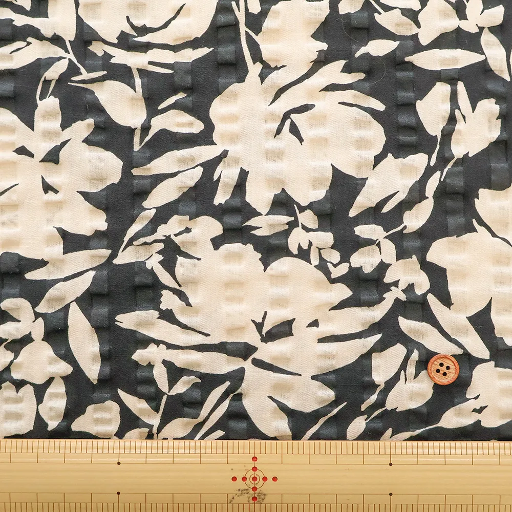 コットンリップルプリント生地 シルエットフラワー