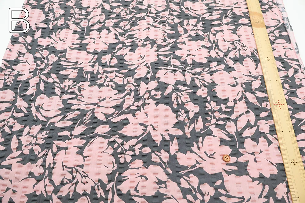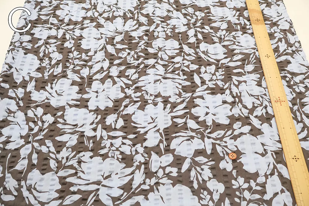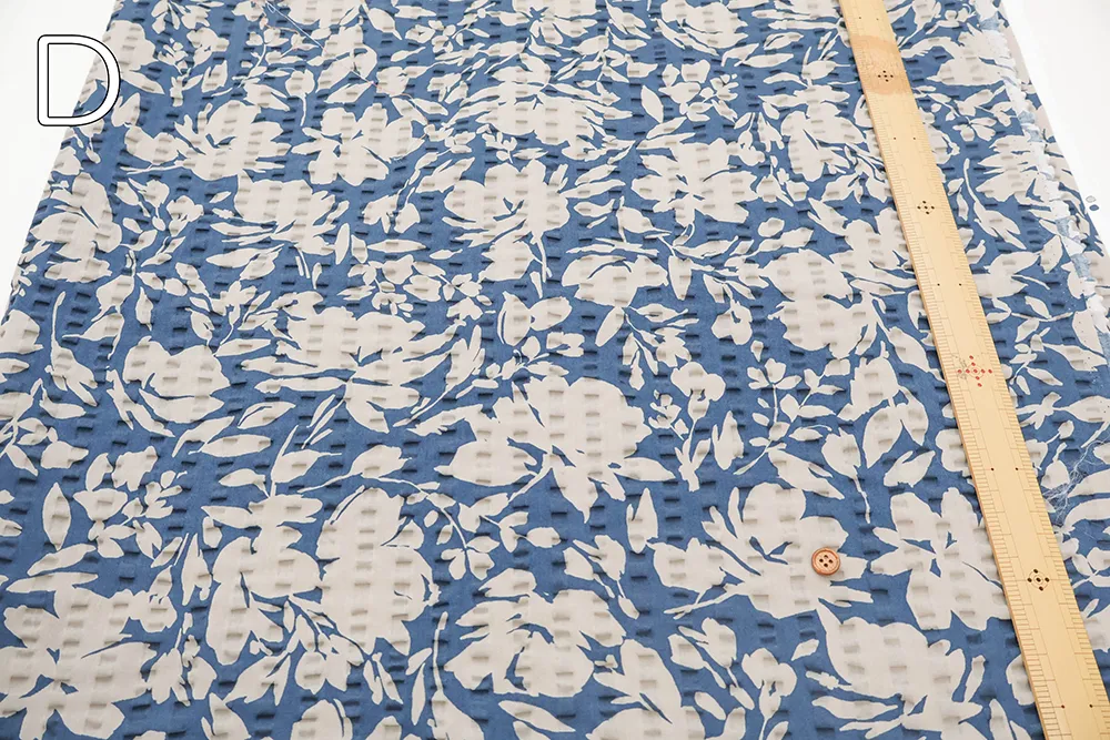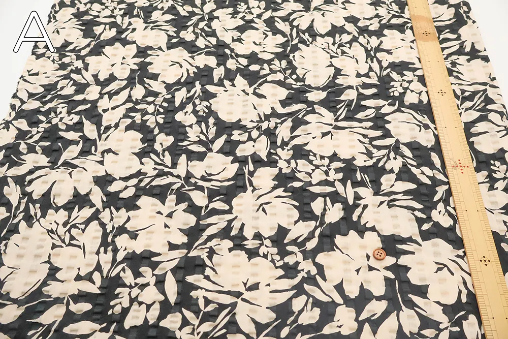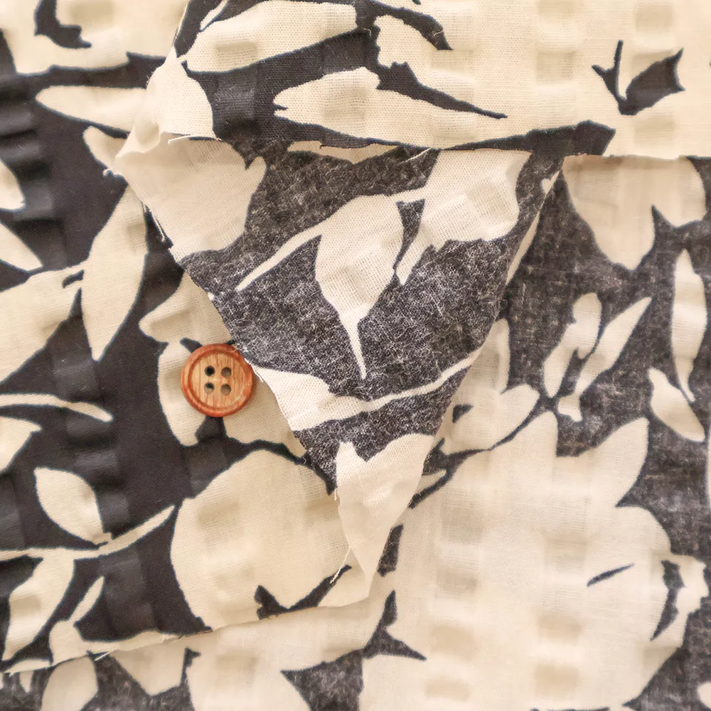 コットンリップルプリント生地 シルエットフラワー
