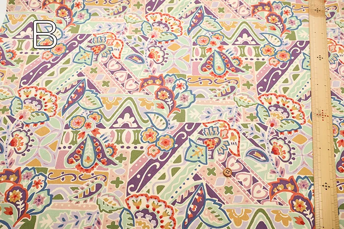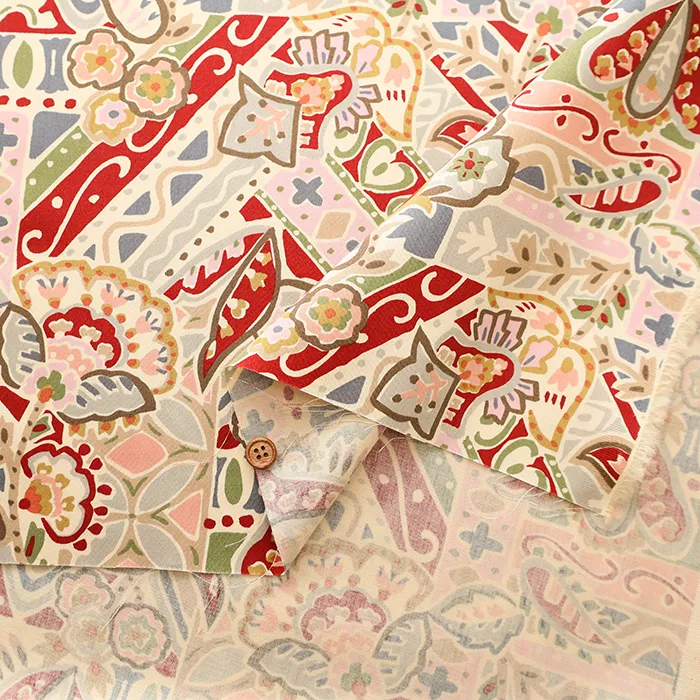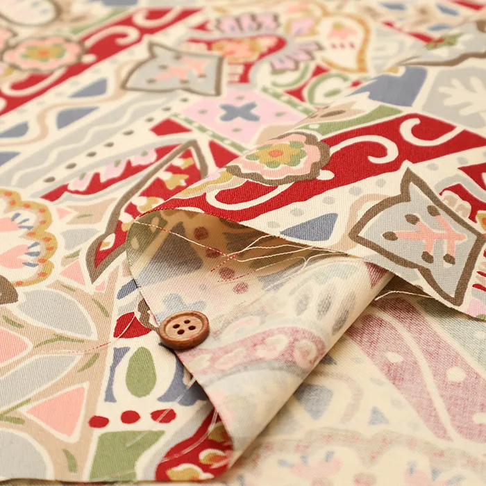 コットンシルエスサテンプリント生地 ペイズリー