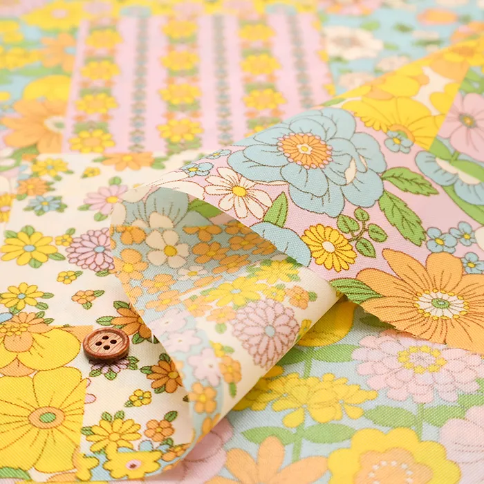 撥水加工 ナイロンオックスプリント生地 70s Design Flower Days(2-080-80011-1)