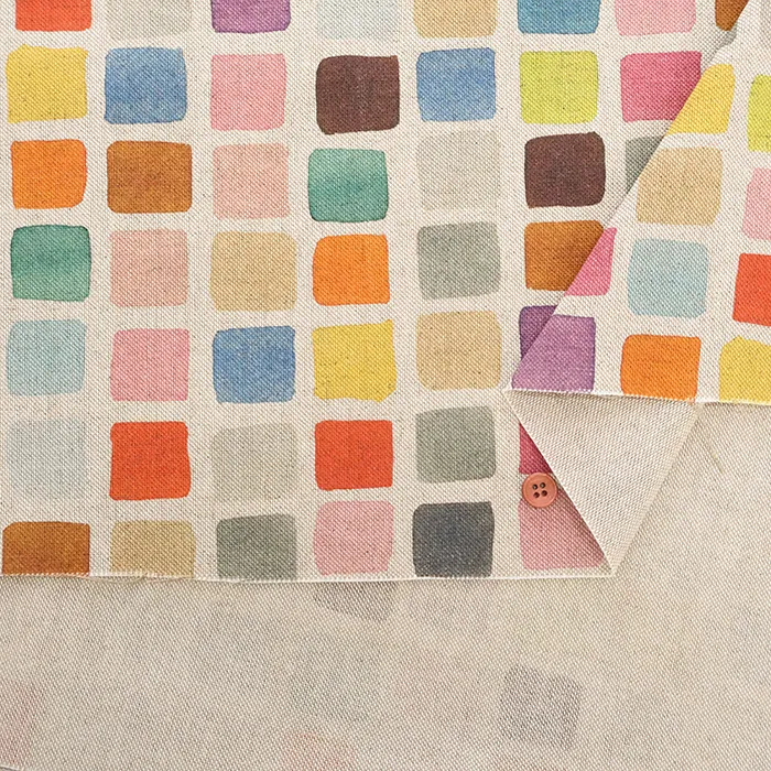こちらはキャンバス程度の厚みで、一般的なキャンバスよりは若干の薄め、シーチングよりは厚めで少しざっくりとした生地感です。
