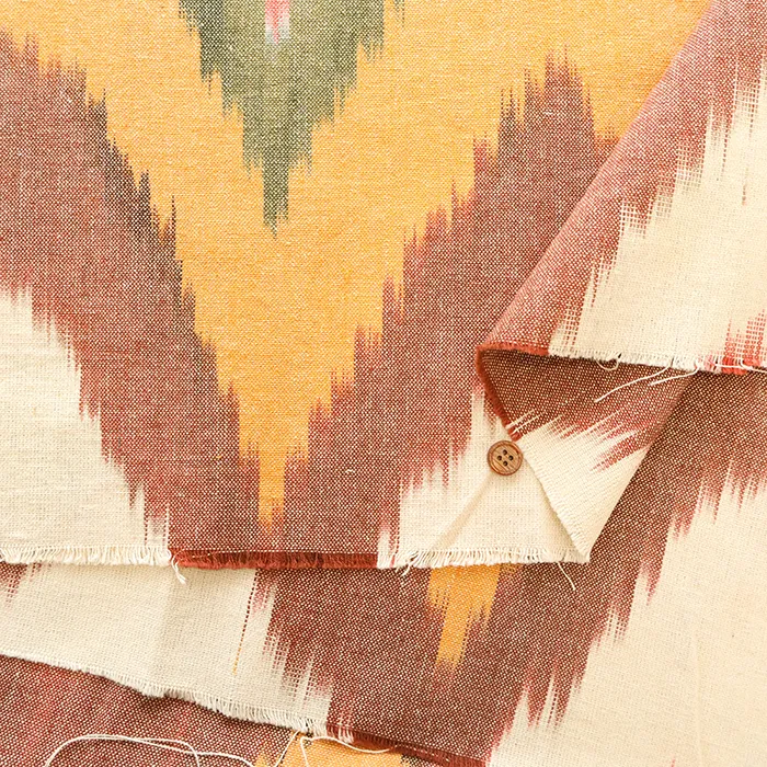 かすり生地とは、前もって染め分けた糸を使い織り上げることで模様に「かすれ」を表現する伝統的な織物技法です。