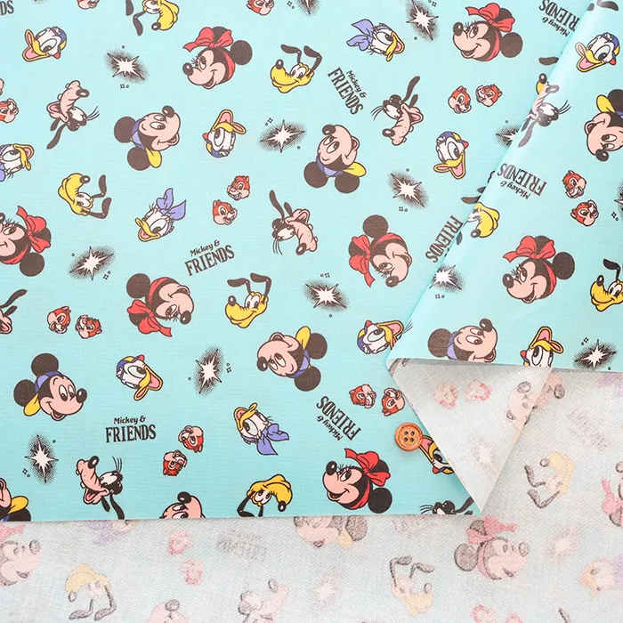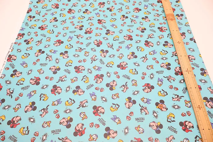 コットンシーチングプリントラミネート生地 ミッキー&フレンズ