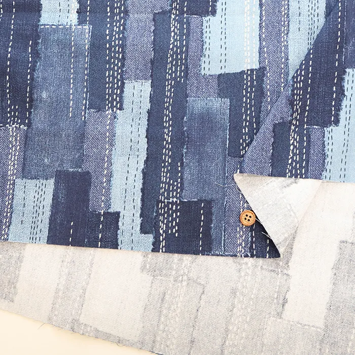 コットンツイルプリント生地 刺し子調パッチワーク2