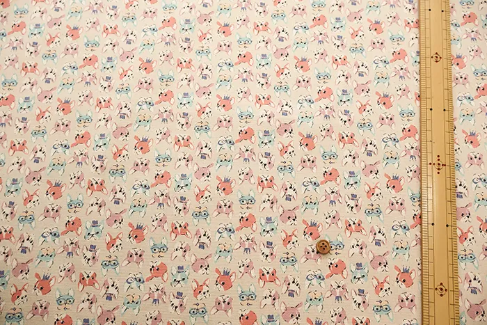 コットンオックスプリント生地 ちびプリ フレンチブル