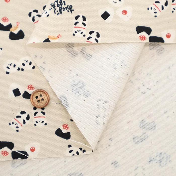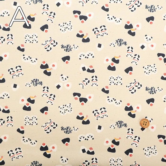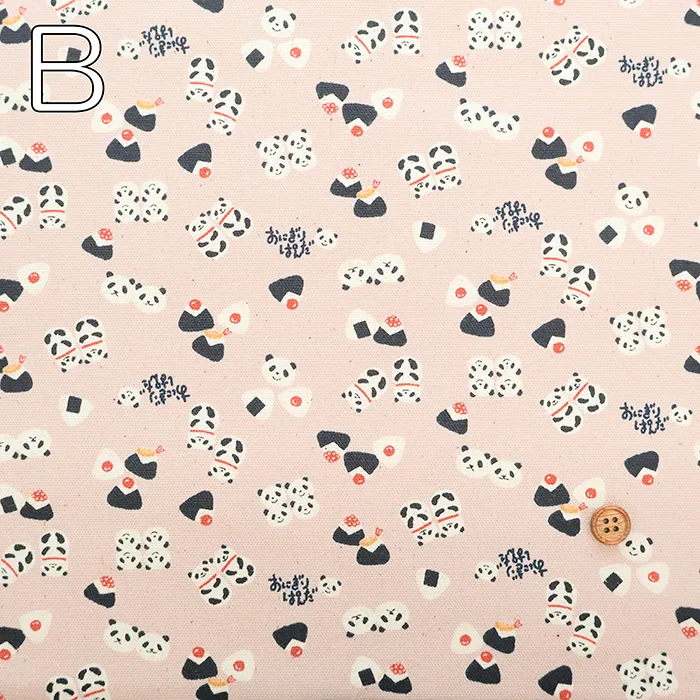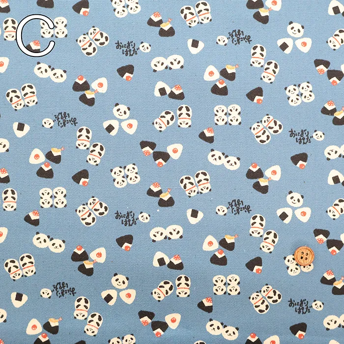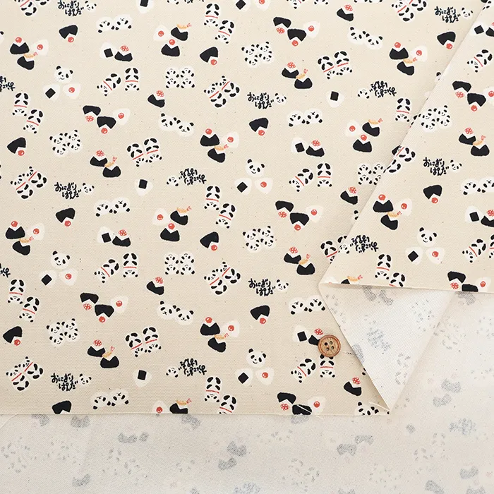 コットンオックスプリント生地 ちびぷり おにぎりパンダ
