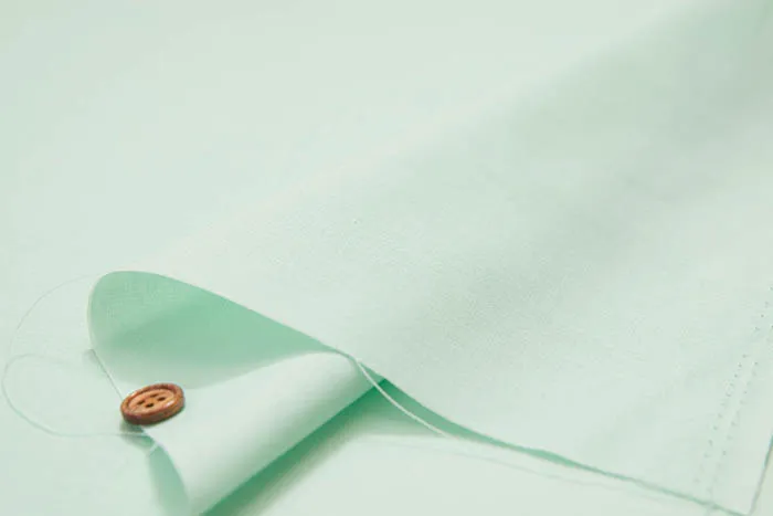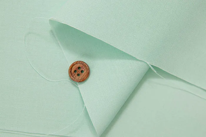 30番手綿糸の平織りで、経糸(たていと)と緯糸(よこいと)が四方(スクエア)にそれぞれ1インチあたり約80本程度で織られています。