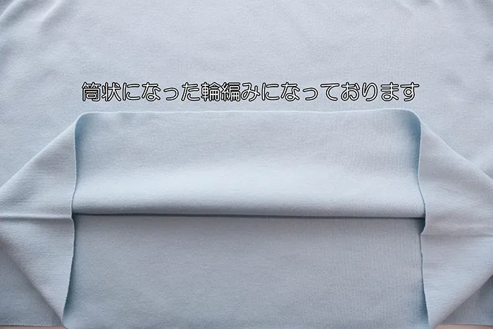 こちらの生地は筒状になった輪編みになっております。