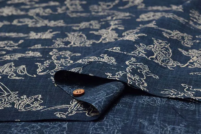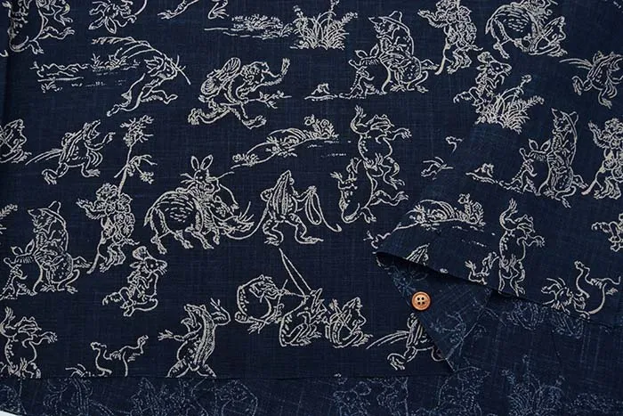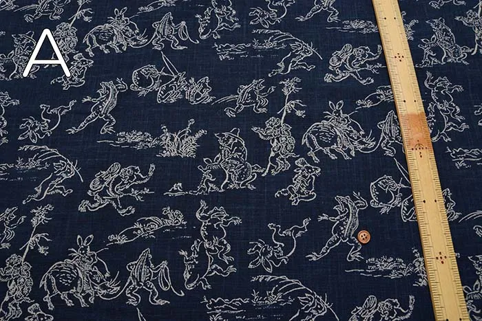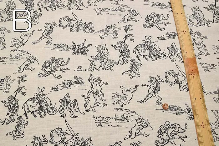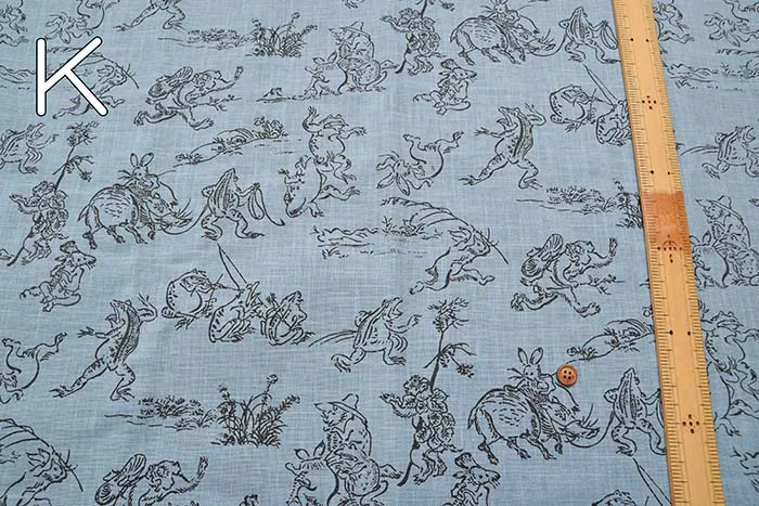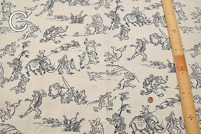コットンモーリープリント生地 鳥獣戯画(小)