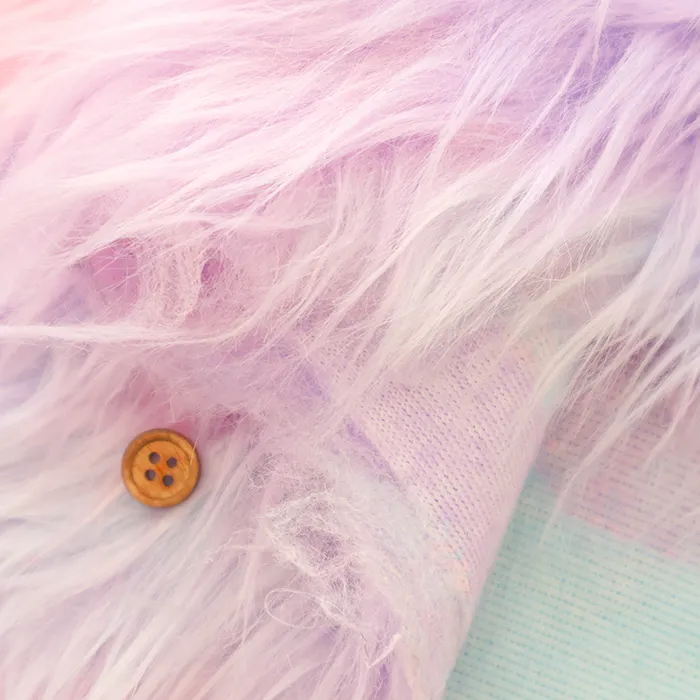 毛足は片面のみで、伸縮性はなく、毛足の長さは約5cmほどです。光沢感がありふかふかと柔らかい手触りです。