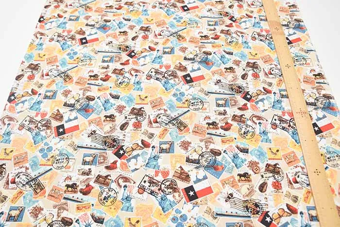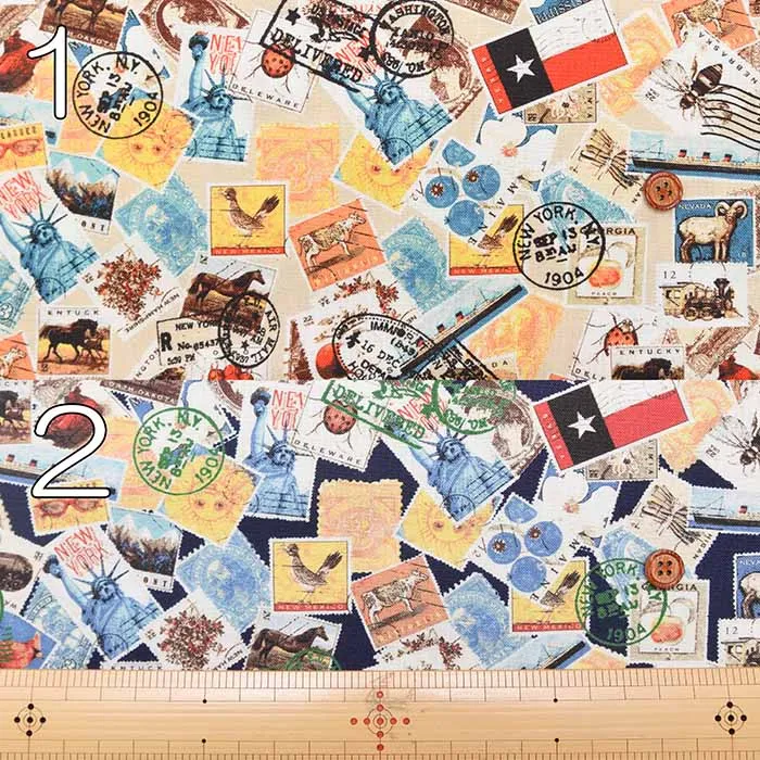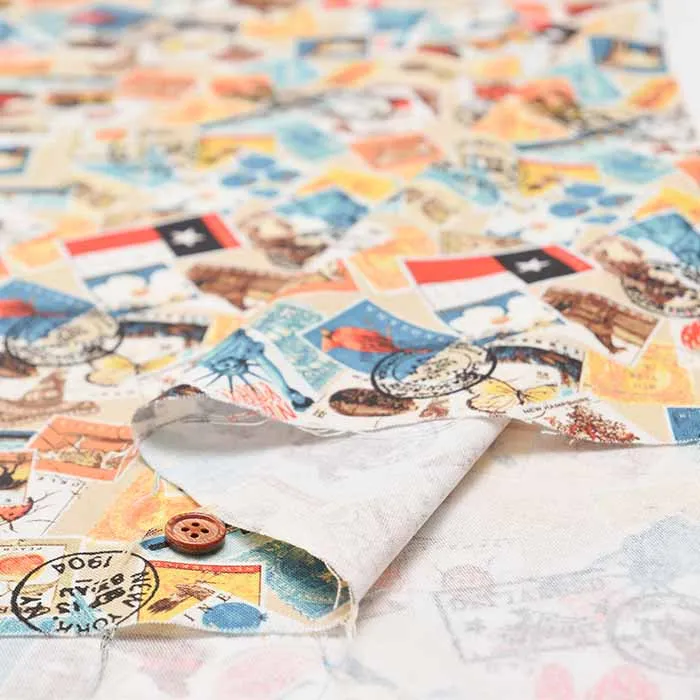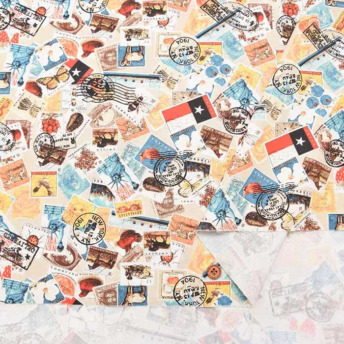 コットンシーチングデジタルプリント生地 Prism 切手