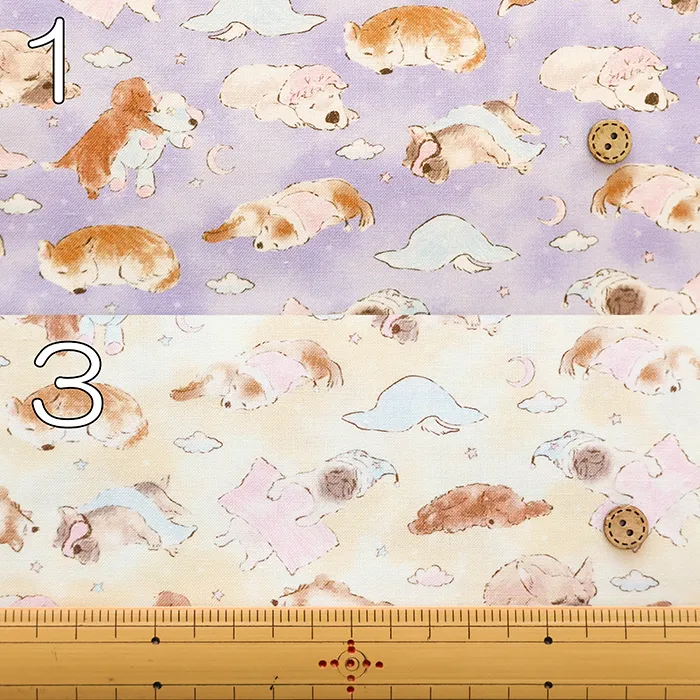 コットンシーチングインクジェットプリント生地 Prism 夢見るワンコ