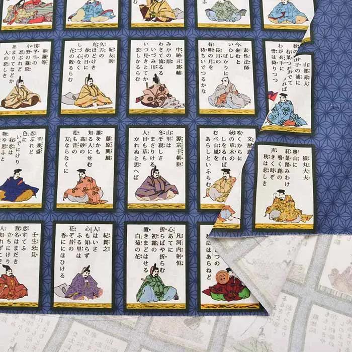 ≪柄売り≫コットンシーチングインクジェットプリント生地 百人一首【一柄:約110cm×50cm】