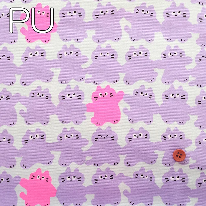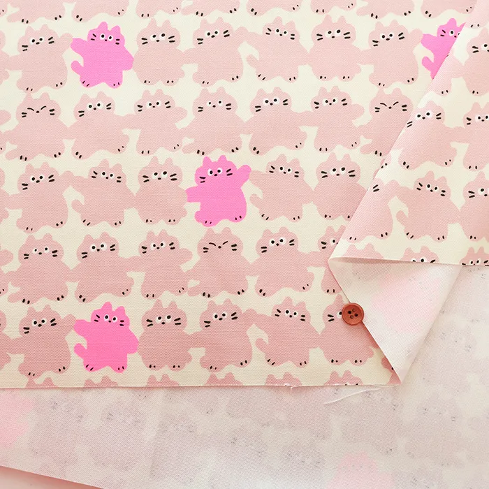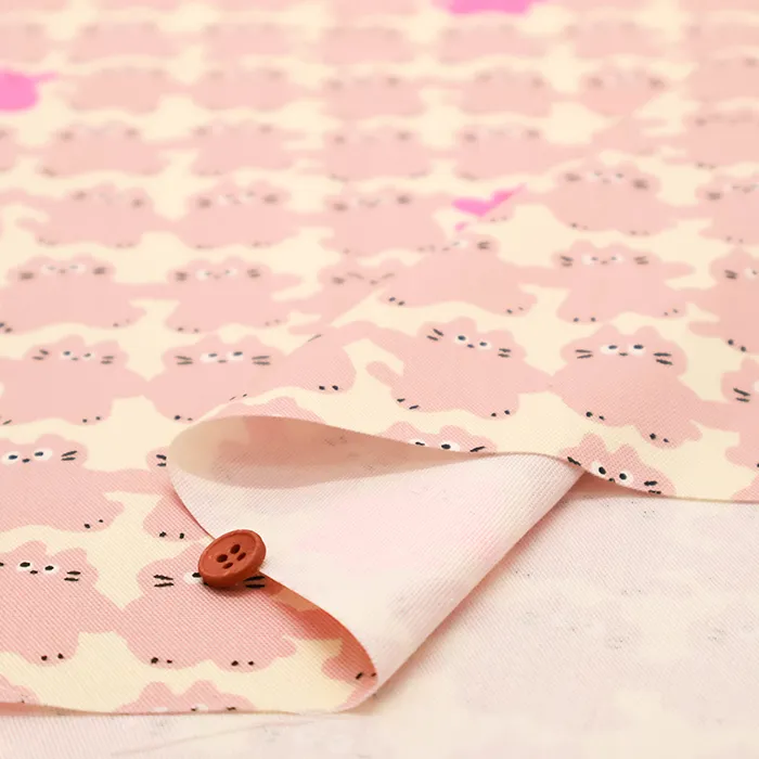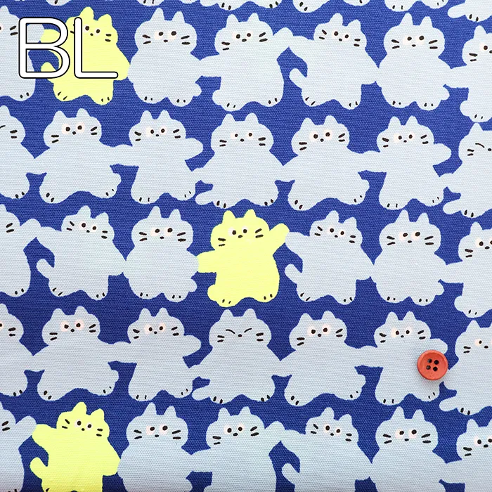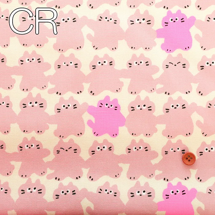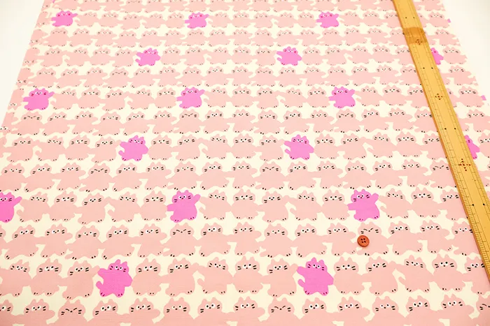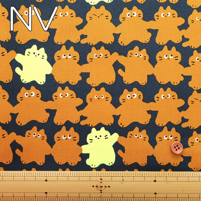 コットンオックスネオンプリント生地 メロウフレンズ ネコ
