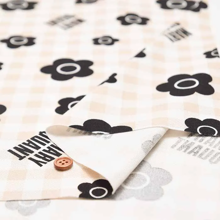 コットンオックスプリント生地 MARY QUANT ギンガムフラワー