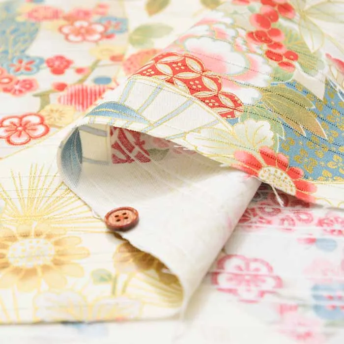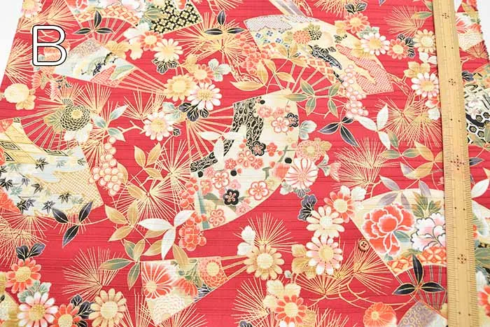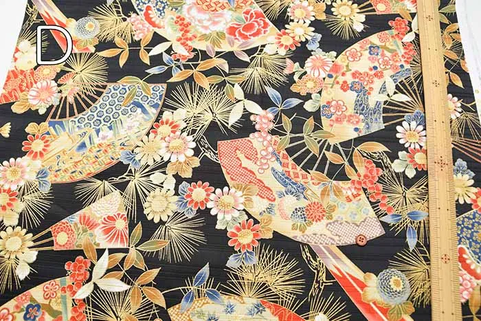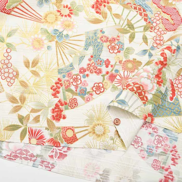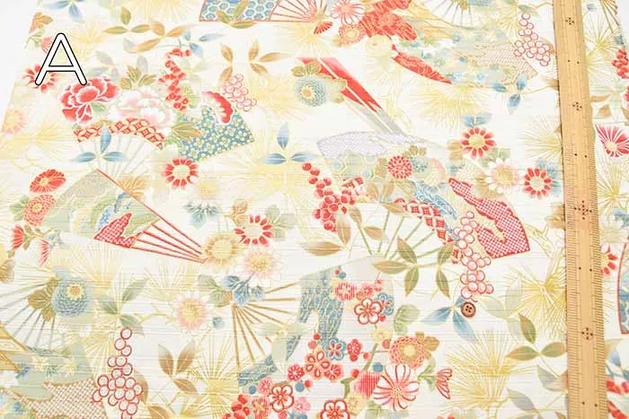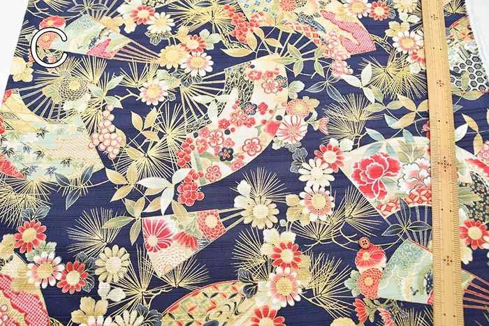 コットンスラブサテンプリント生地 扇
