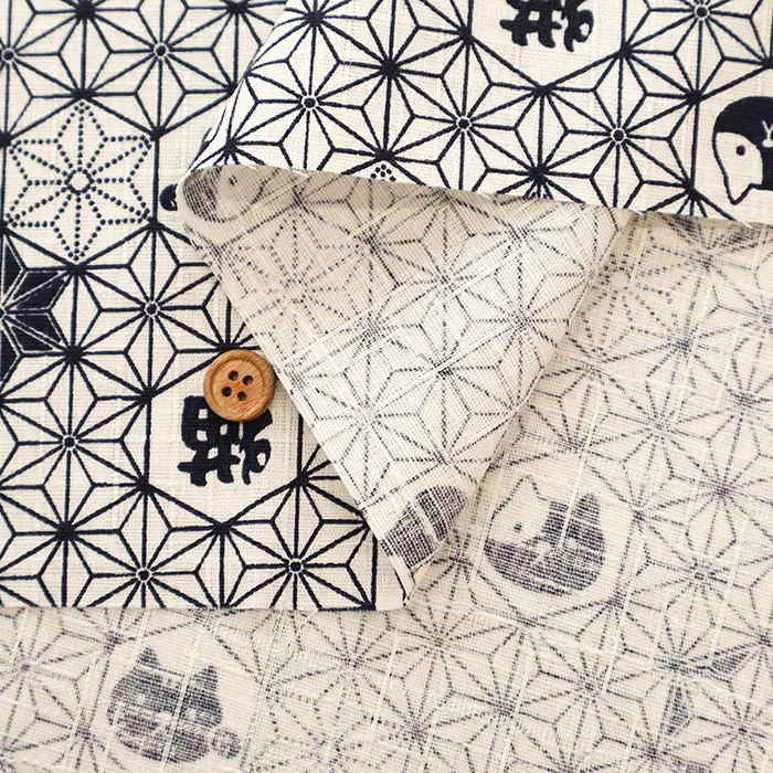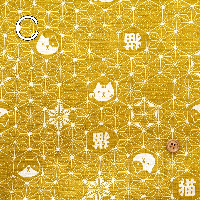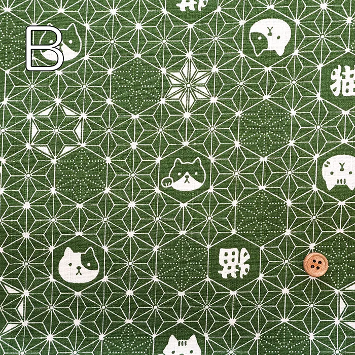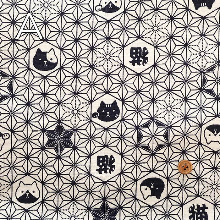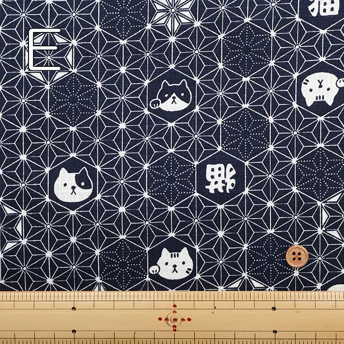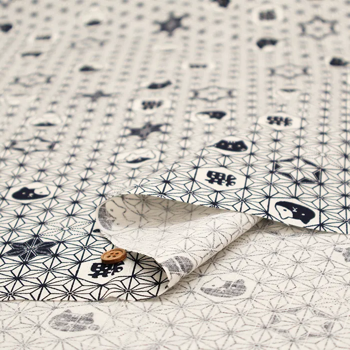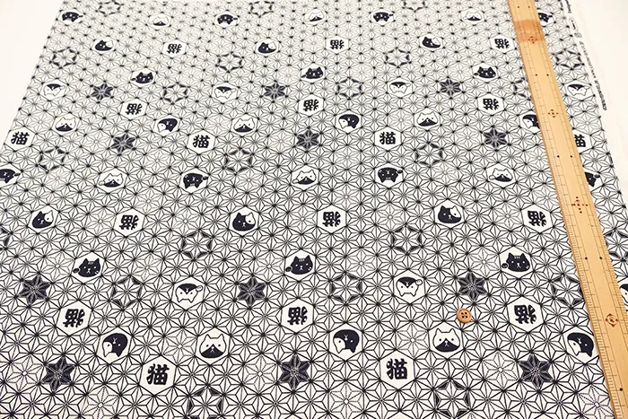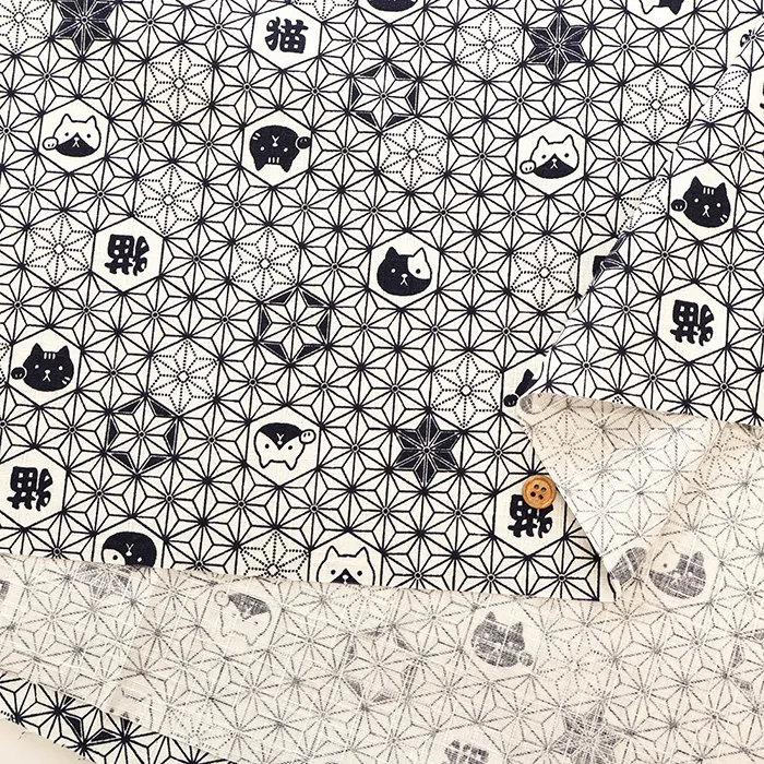 コットンドビープリント生地 麻の葉ネコ