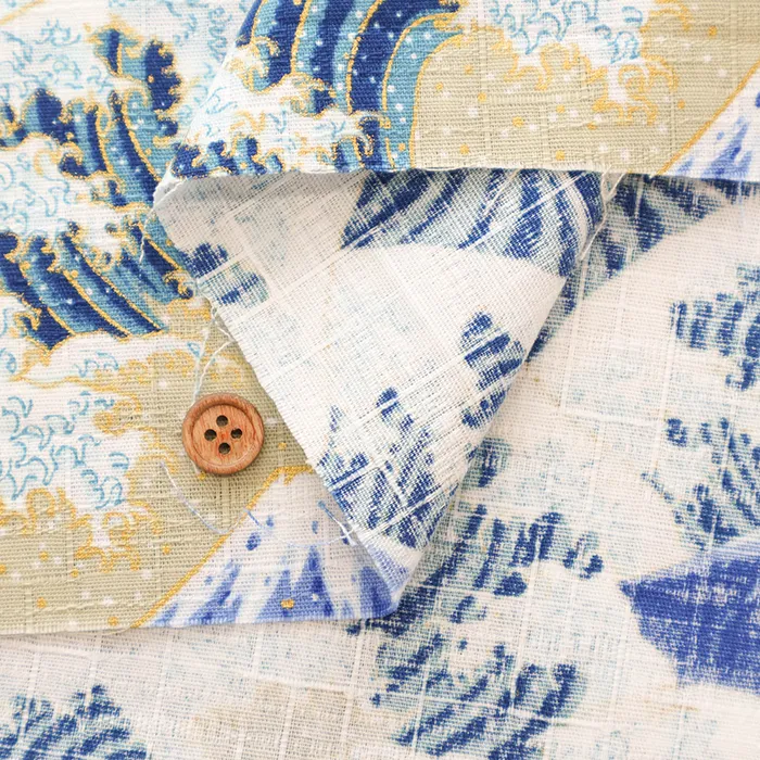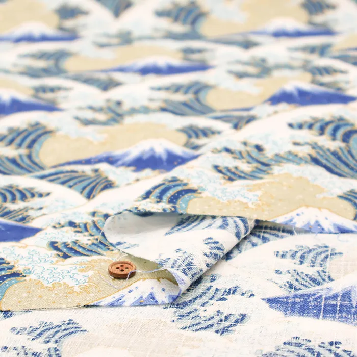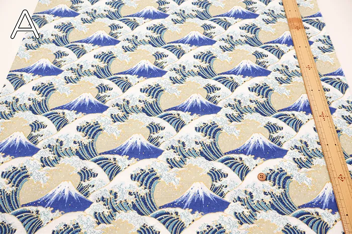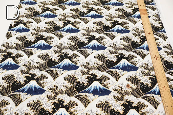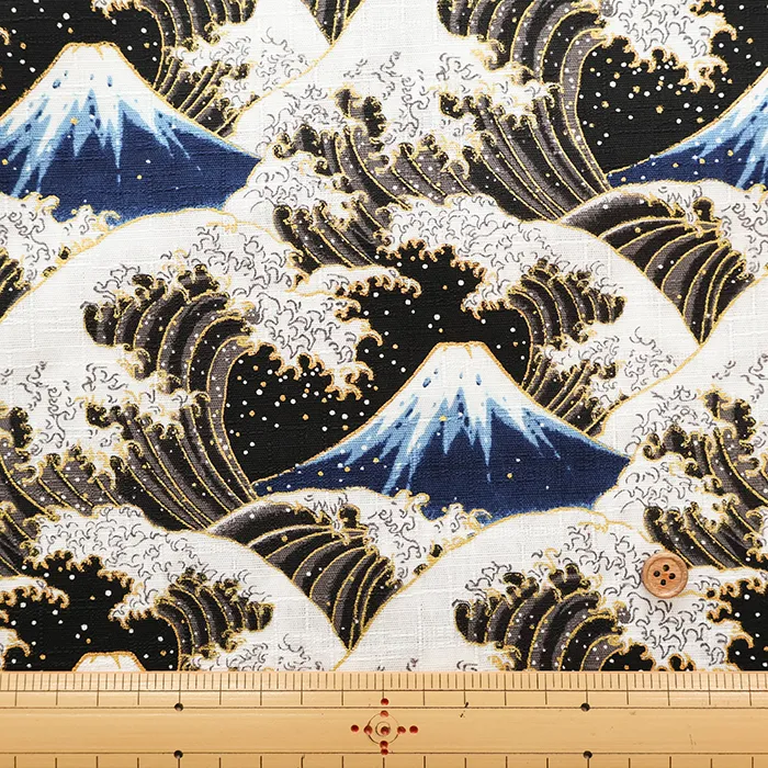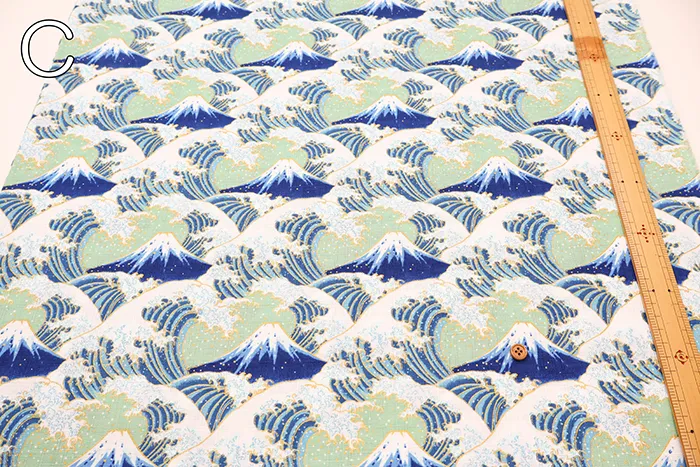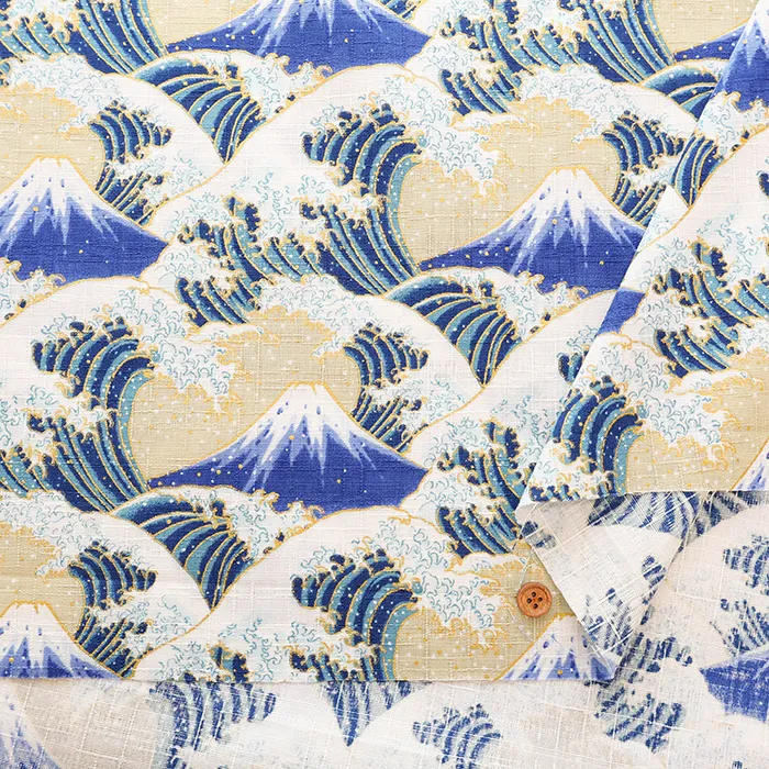 コットンドビープリント生地 富士と波