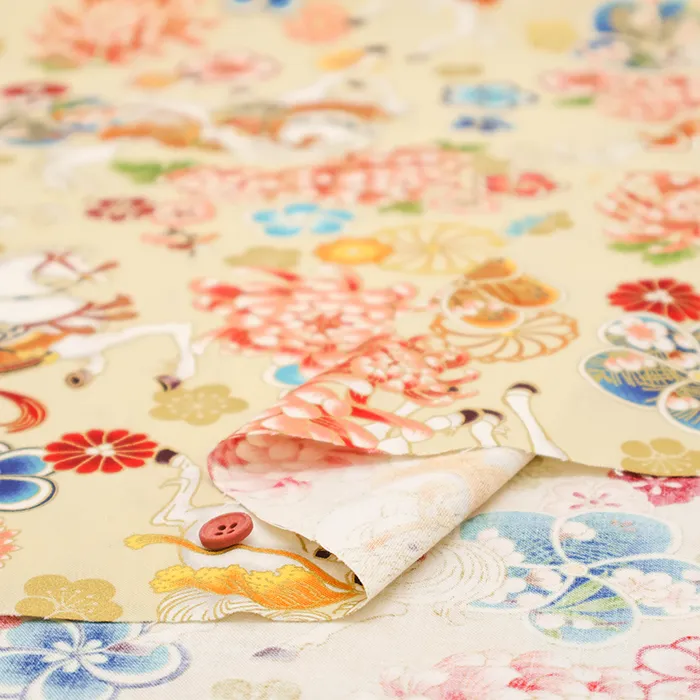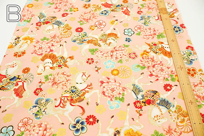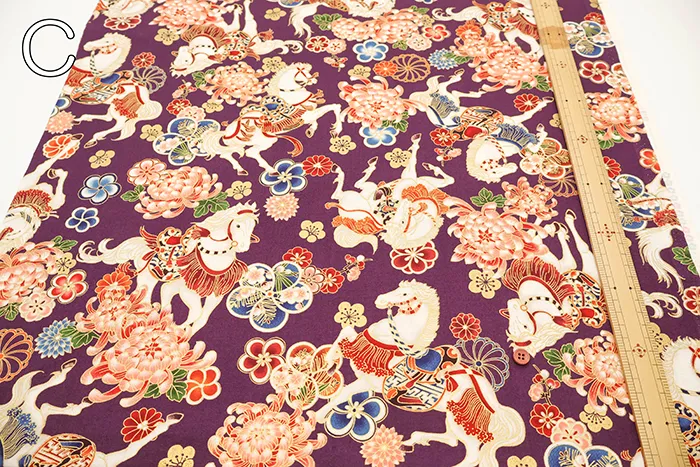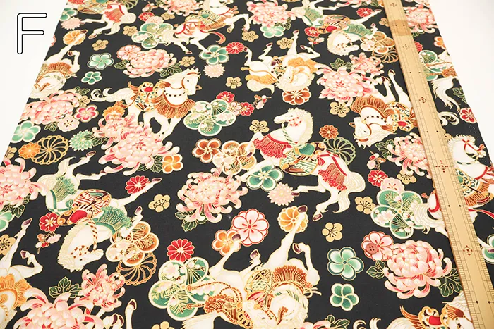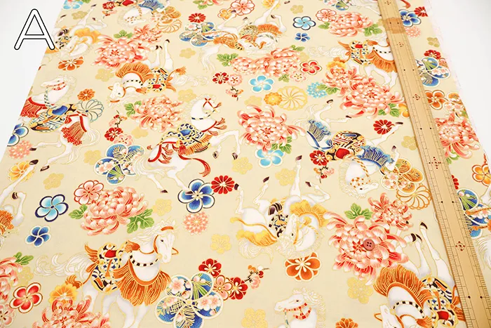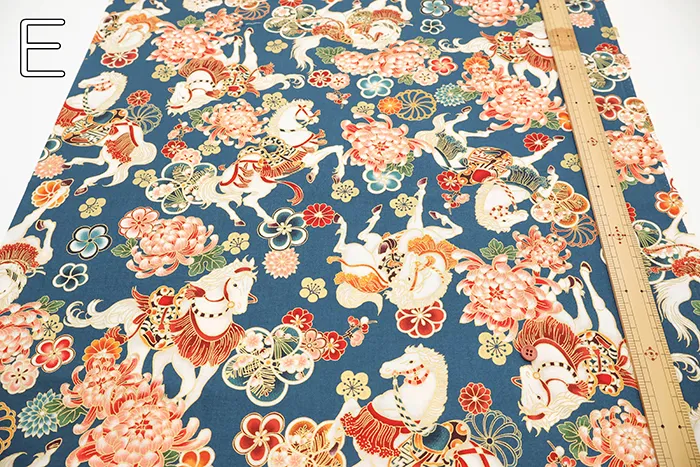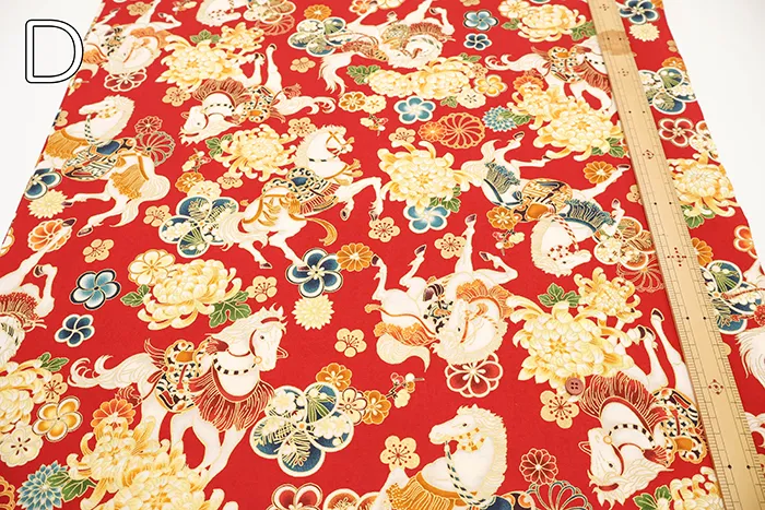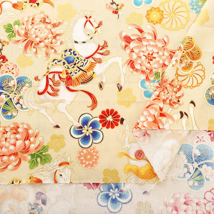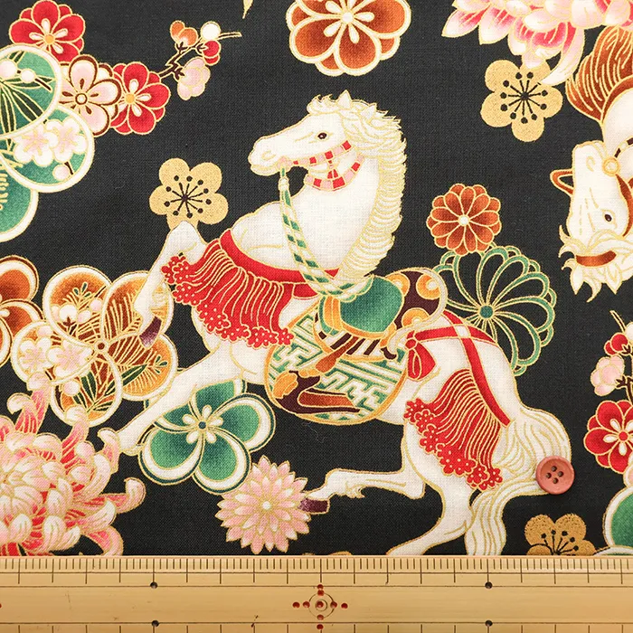 コットンシーチングプリント生地 百花繚乱 干支~馬~
