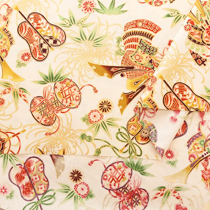コットンシーチングプリント生地 百華繚蘭 兜