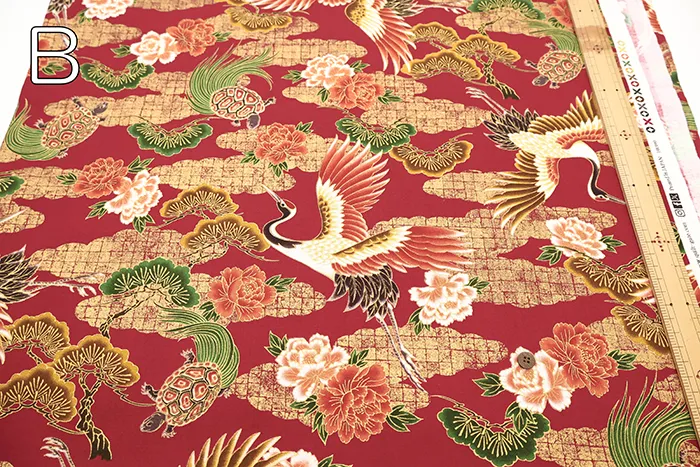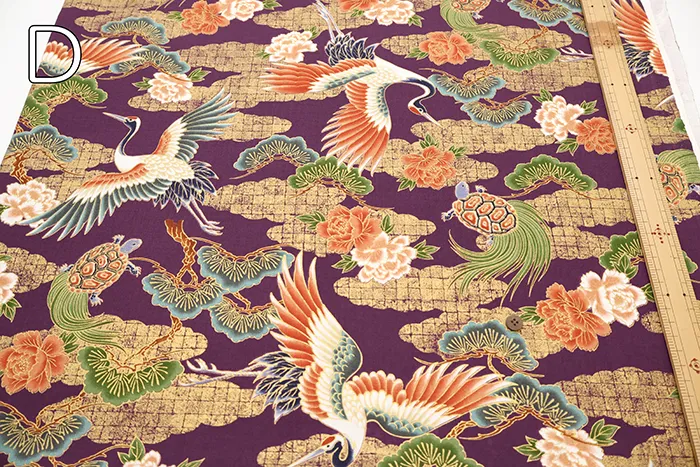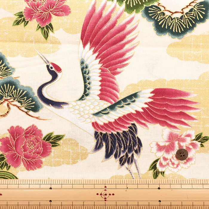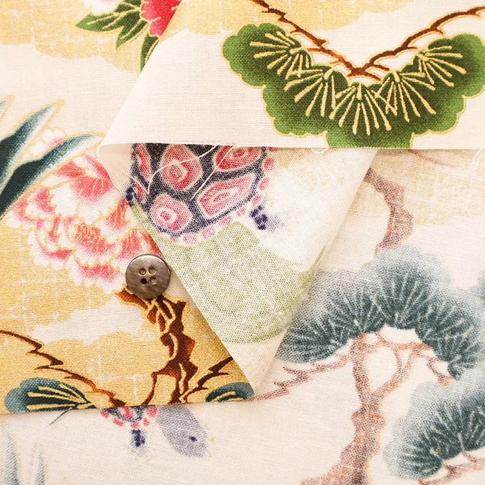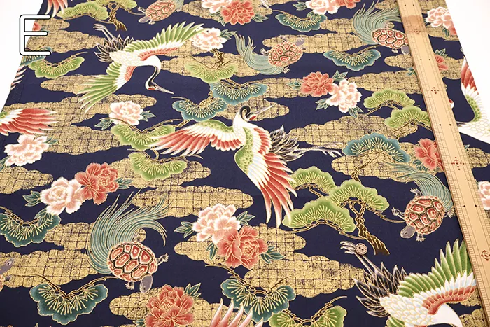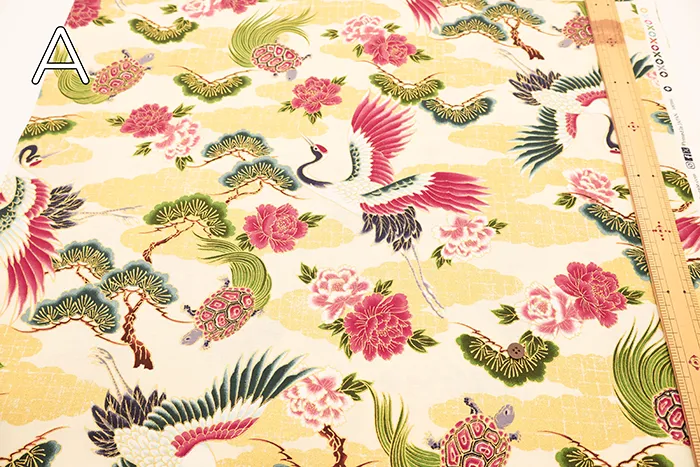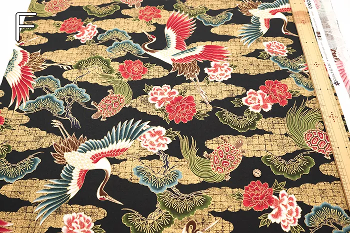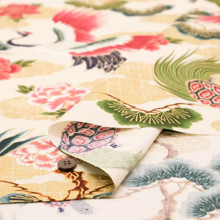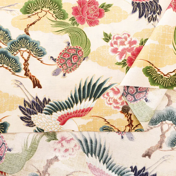 コットンシーチングプリント生地 百華繚蘭 鶴と亀