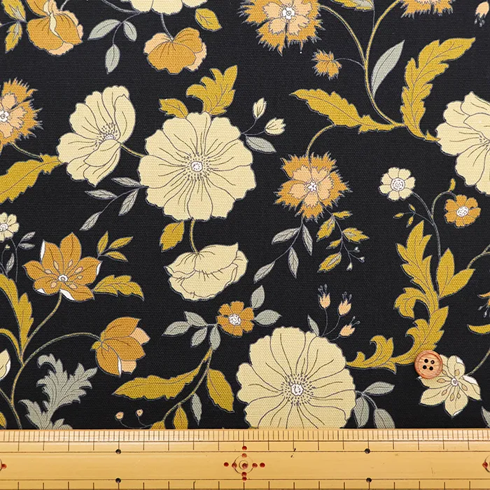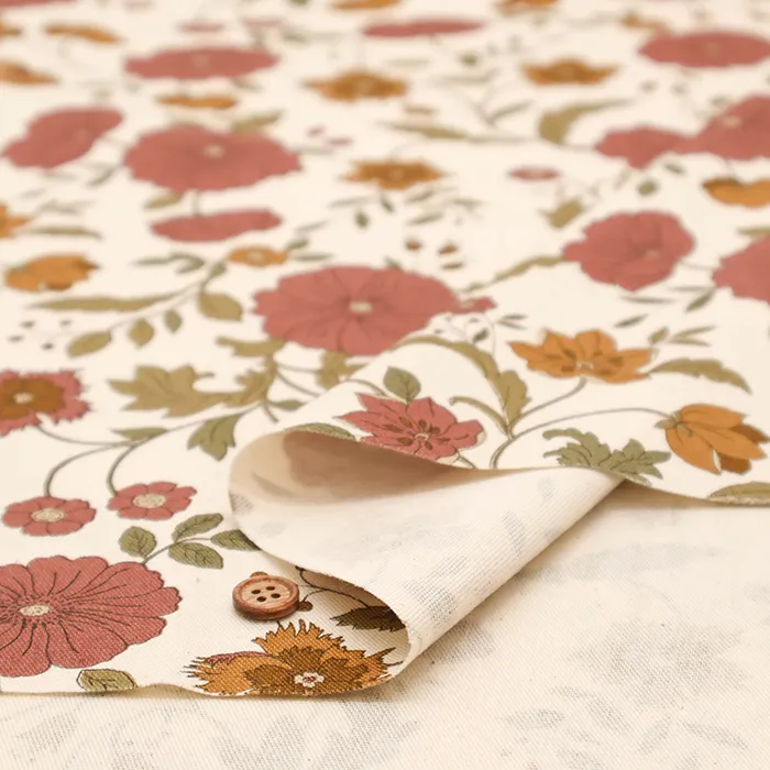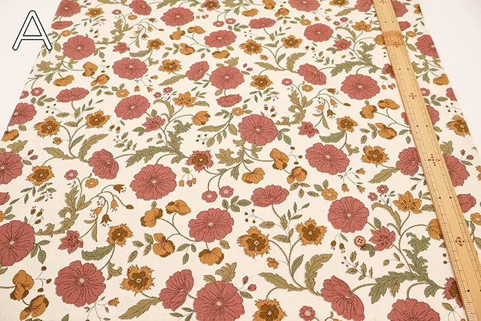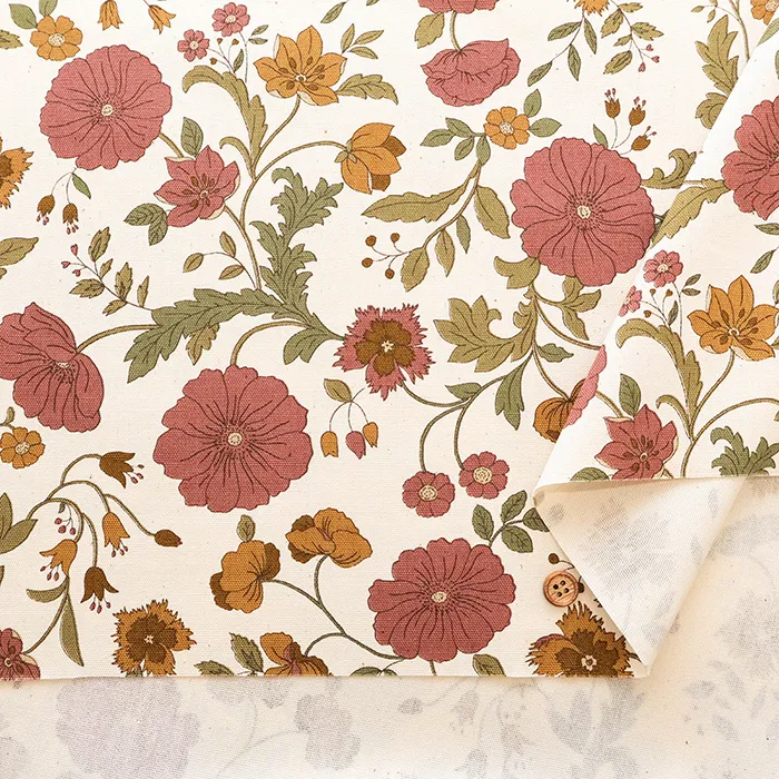 コットンオックスプリント生地 アンティ-クフラワー 1