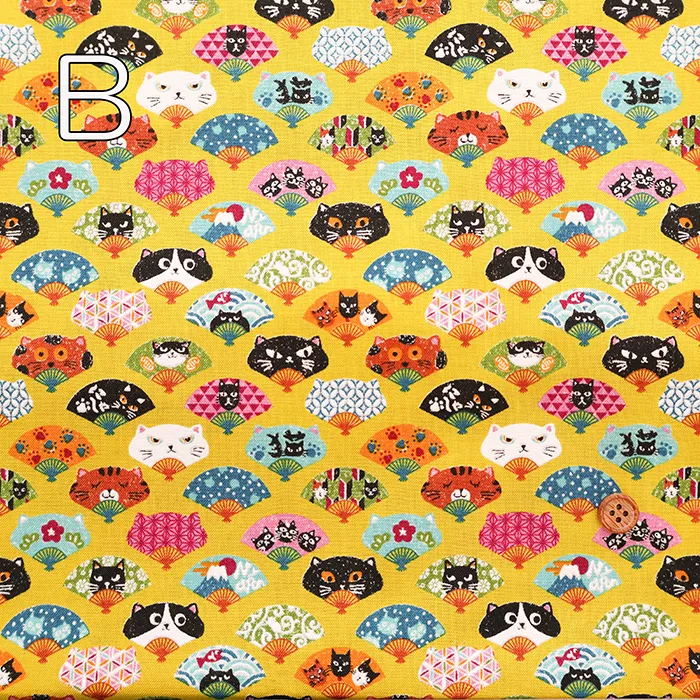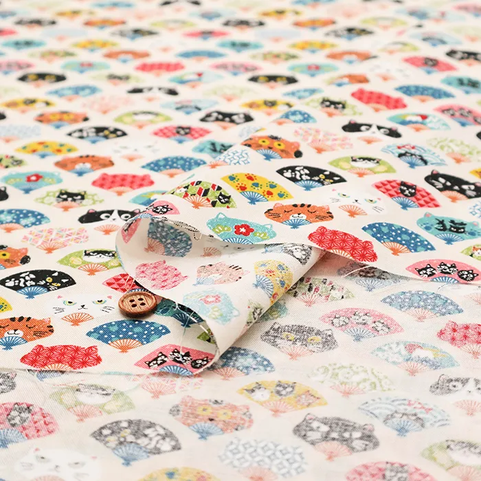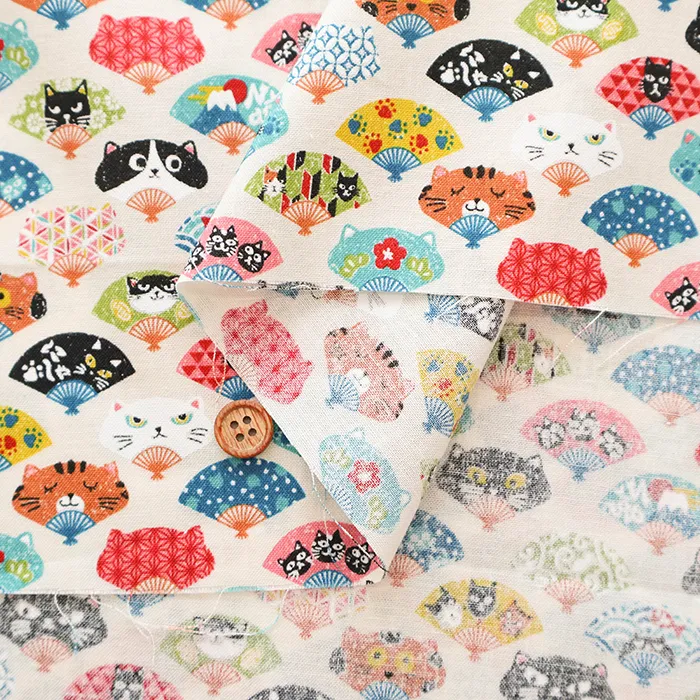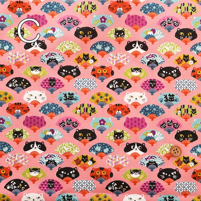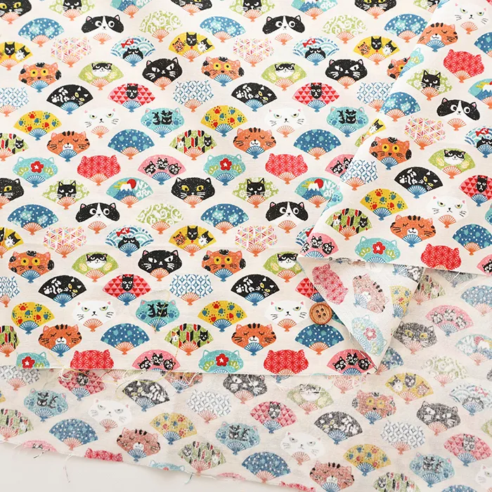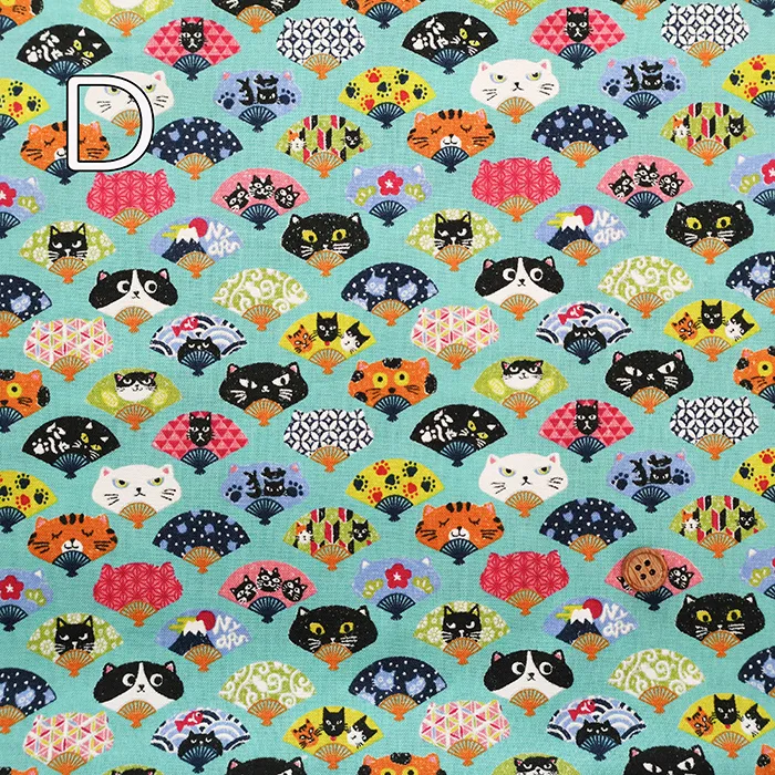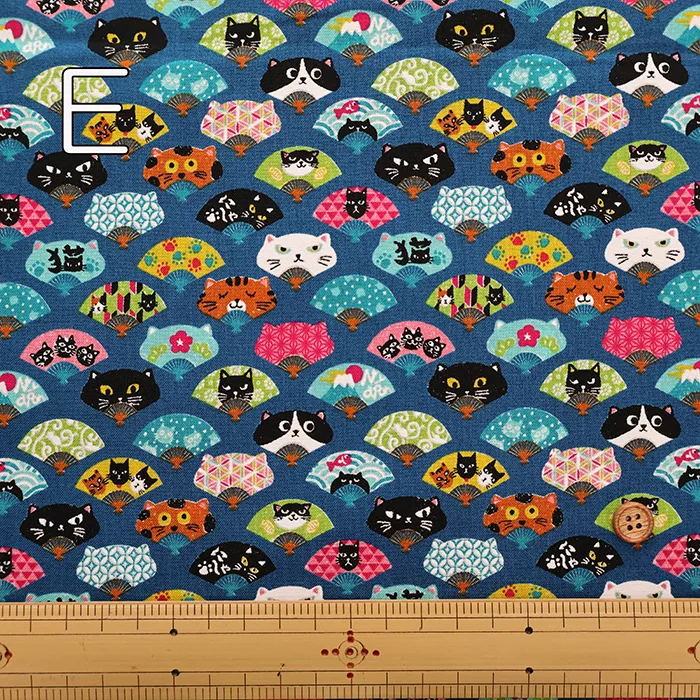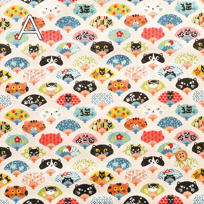 コットンスケアプリント生地 にゃんこだ和 せんすだにゃー