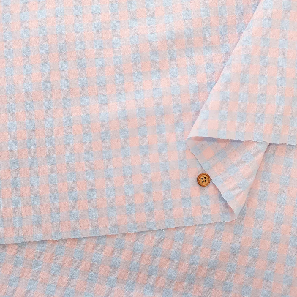 中国製 T/Cサッカープリント生地 フェアリーチェック(大)