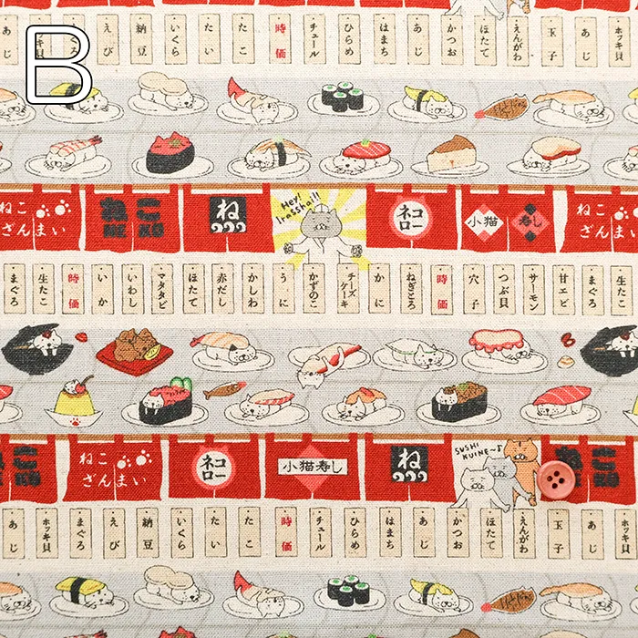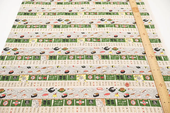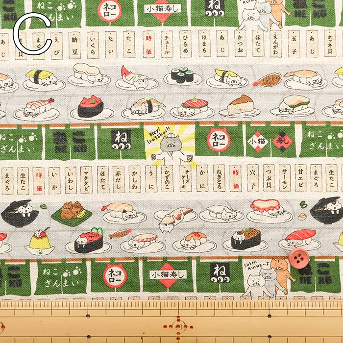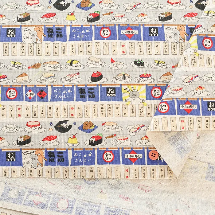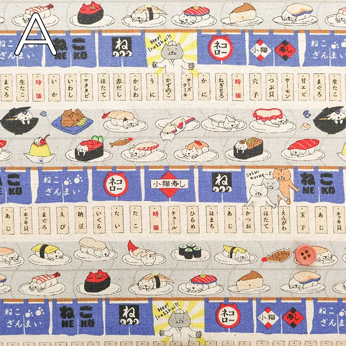 C/Lキャンバスプリント生地 回転寿司猫