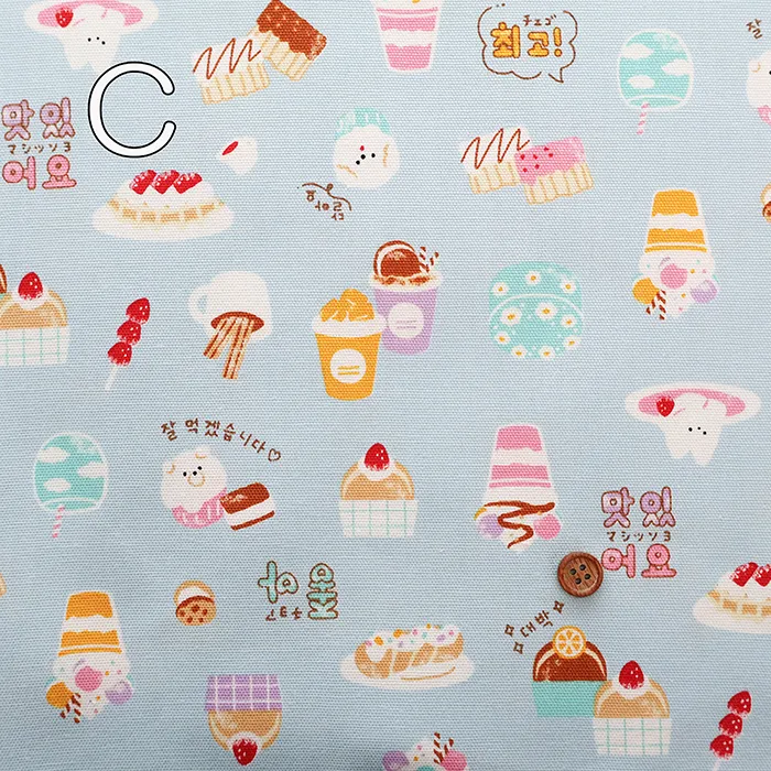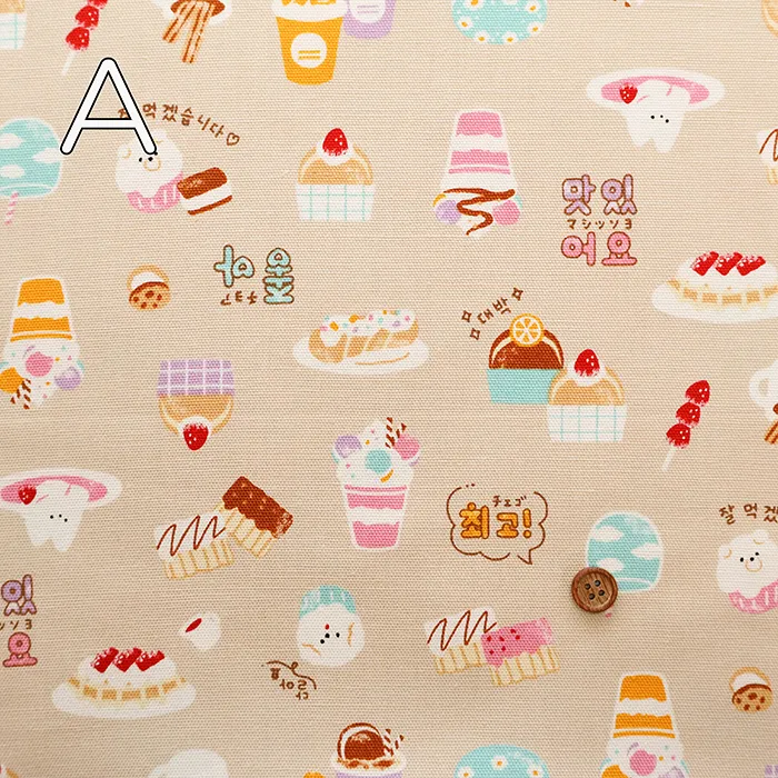 コットンオックスプリント生地 ハングルスイーツアニマル
