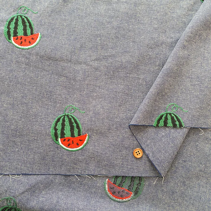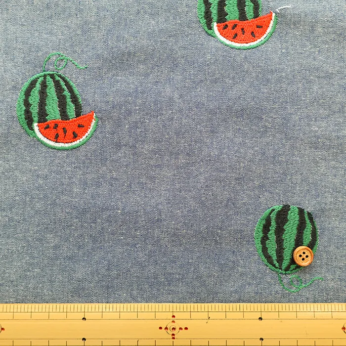 中国製 コットンシーチング刺繍生地 スイカ