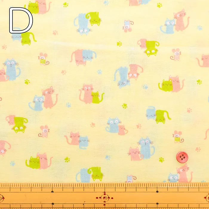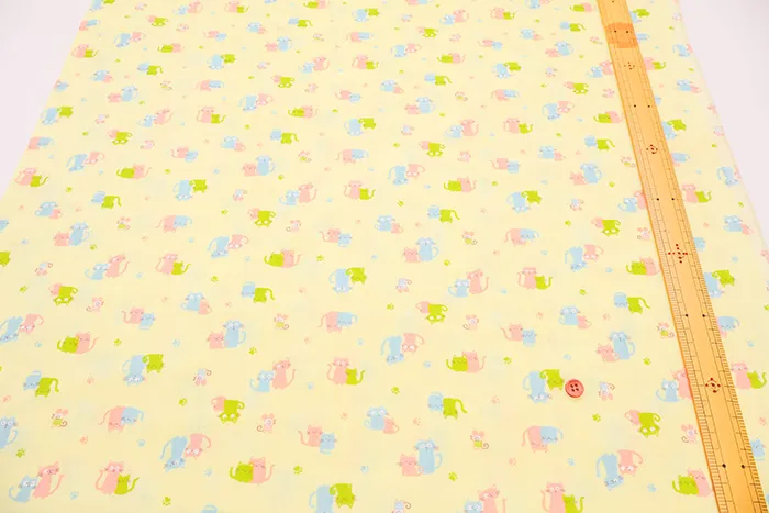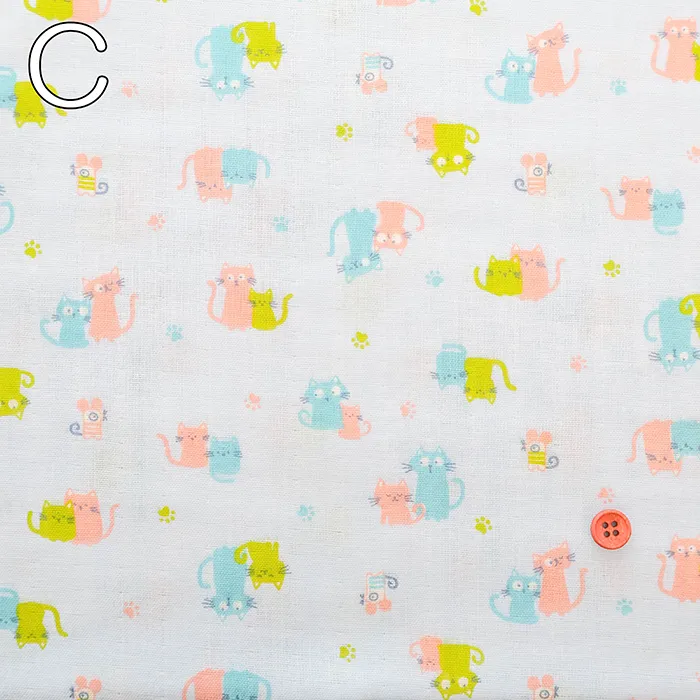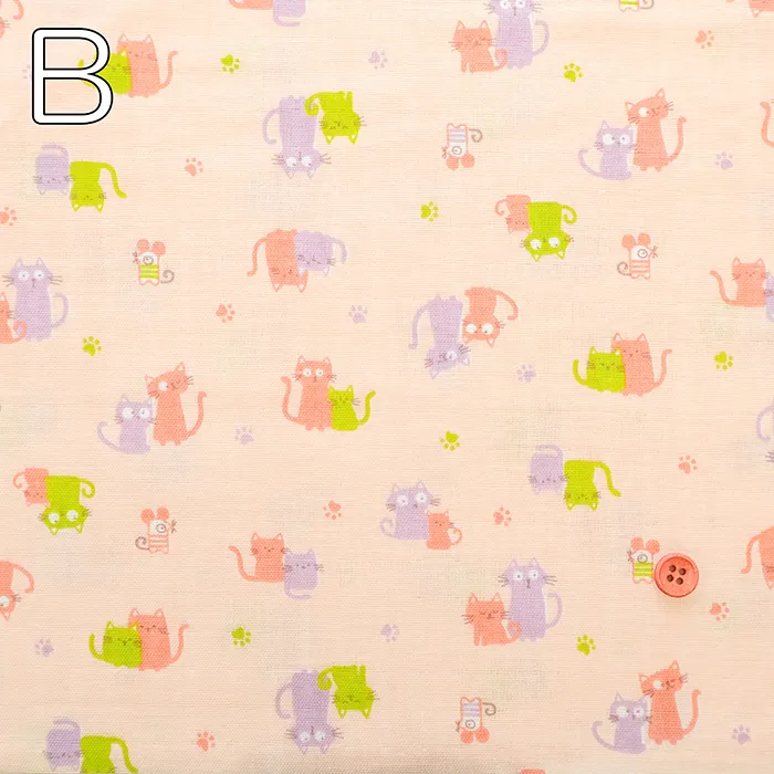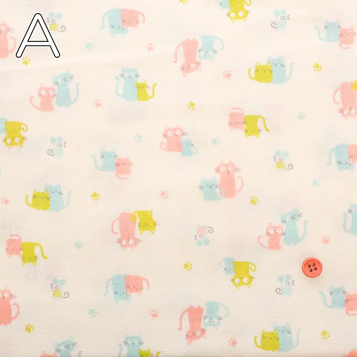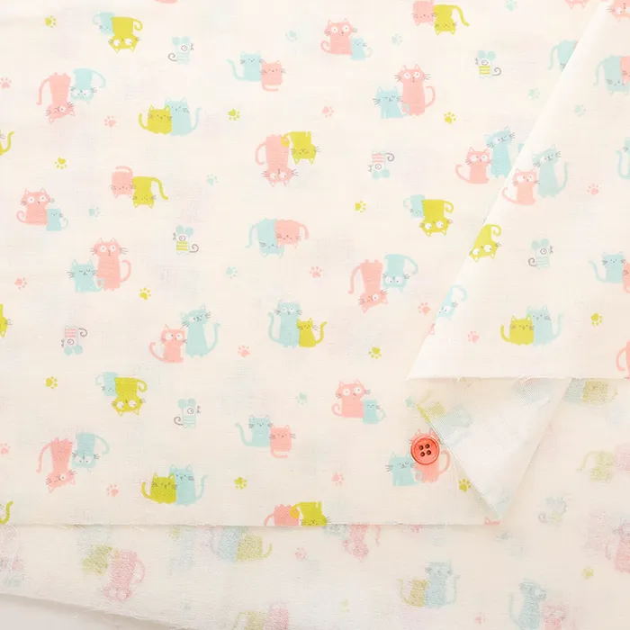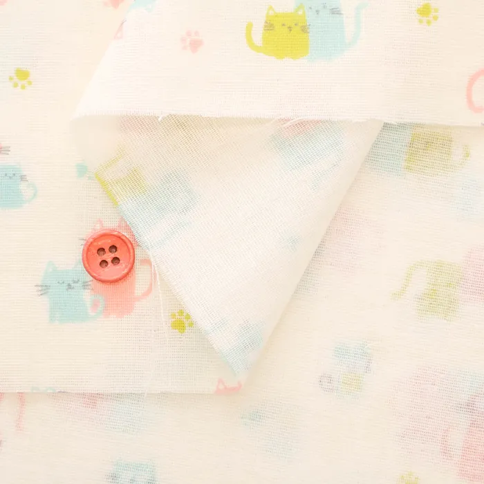 コットンダブルガーゼプリント生地 fluffy feeling ネコ