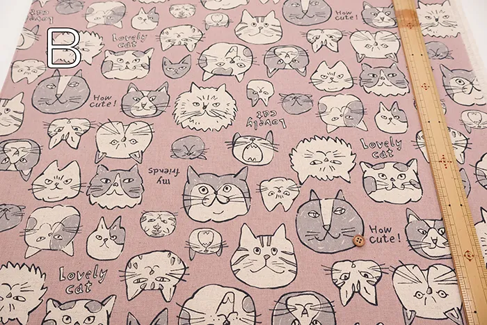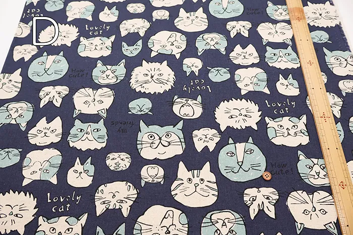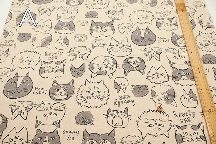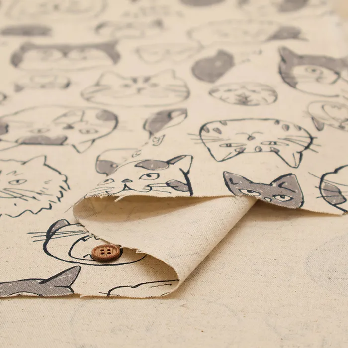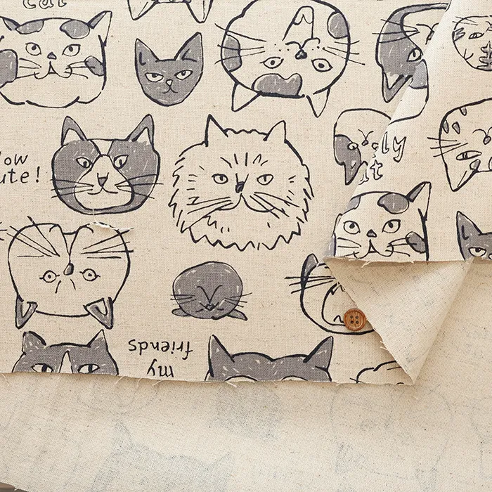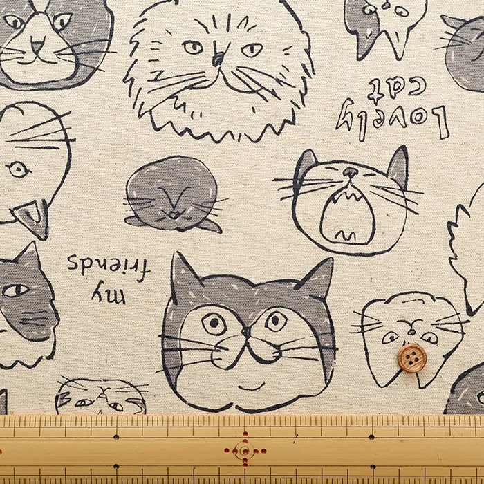 C/Lキャンバスプリント生地 Doodle Animal Cats face