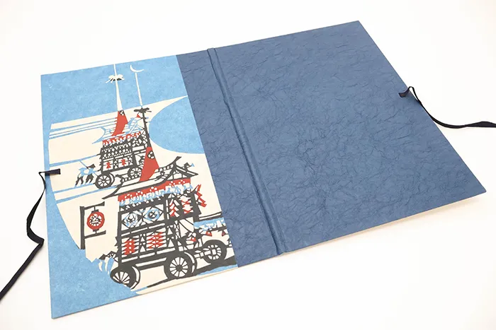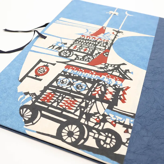 日本三大祭の一つ「祇園祭」の山鉾をモチーフに、和紙特有のあたたかみのある風合いと美しい捺染摺をお楽しみいただけます。