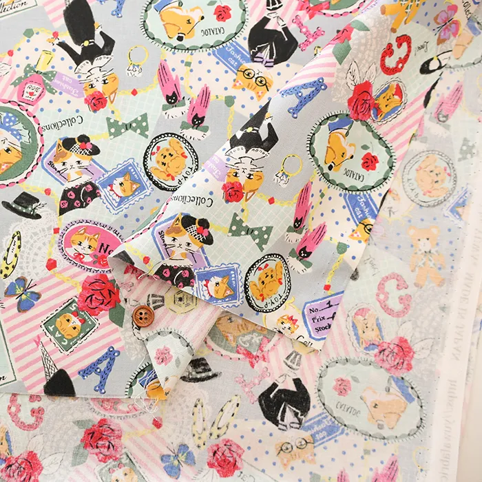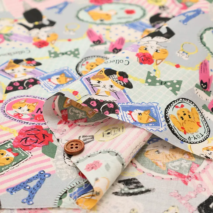 コットンシャーティングプリント生地 ソバカスキッズ Cat's collection