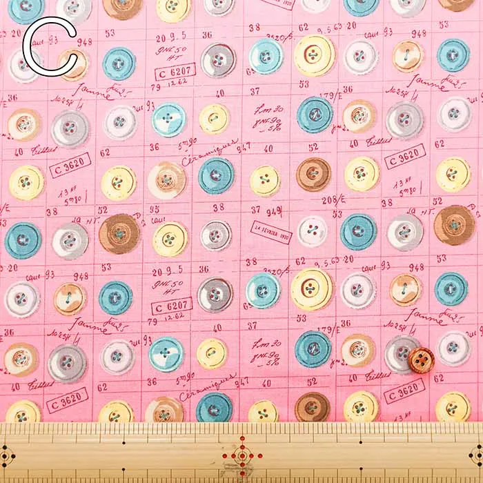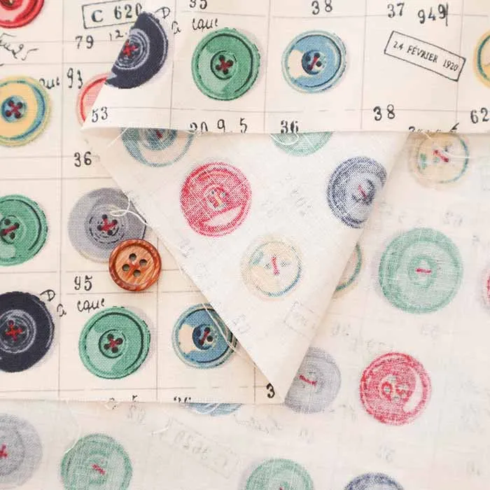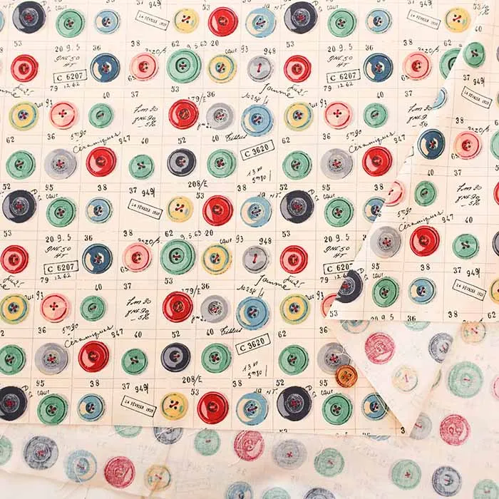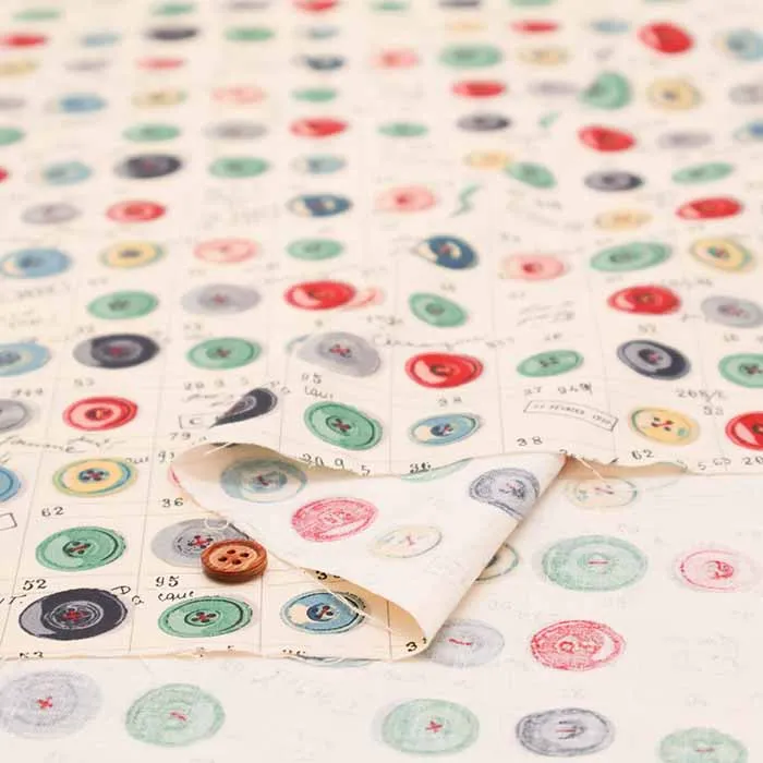 コットンシャーティングプリント生地 小関鈴子コレクション ボタン柄