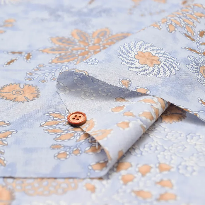 インド製 コットンブループリント生地