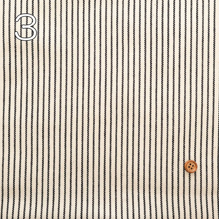 ヒッコリー生地とは、デニムと同じ綾織りで織られたストライプ柄の織物です。