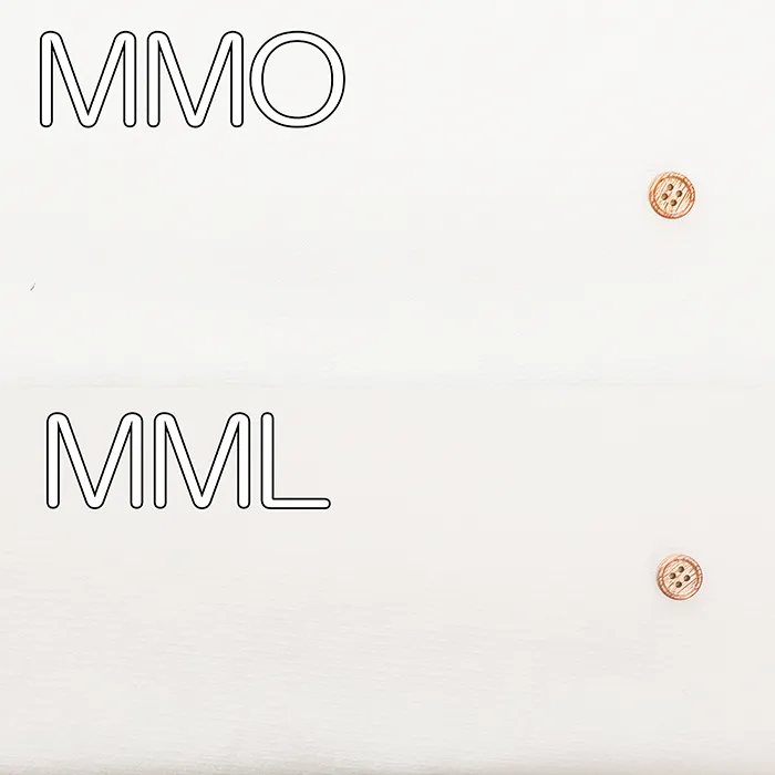 MMOはホワイト、MMLは若干クリーム寄りのホワイト(オフ)となっております。