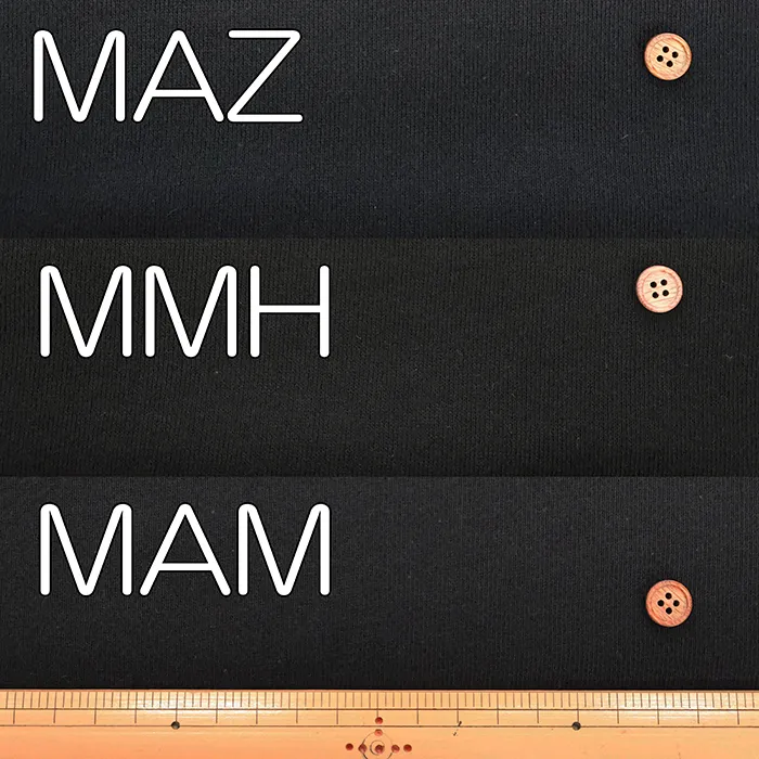 MAZは若干青みがかったブラック(蒼黒)、MMHはブラック(黒)、MAMは若干白みがかったブラック(墨黒)となっております。