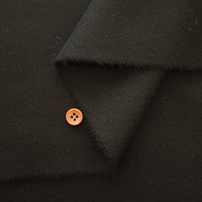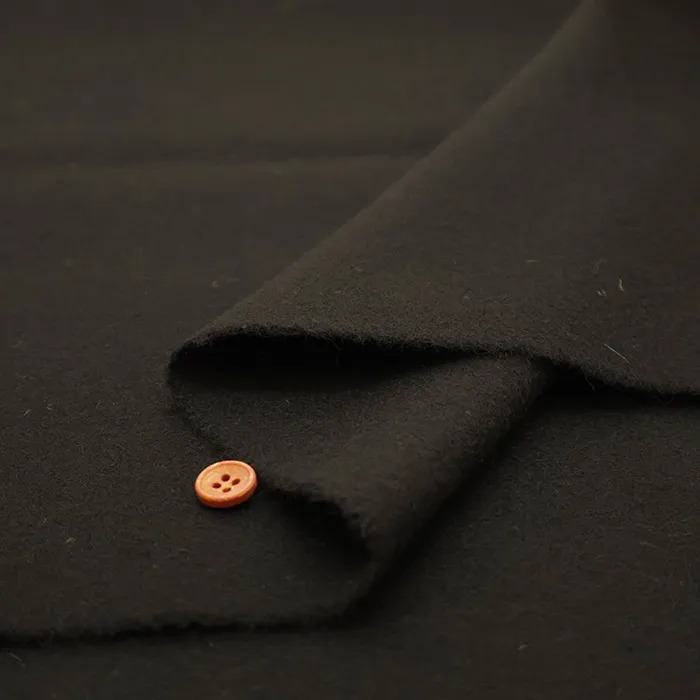 ウールモッサとは、ウールの紡毛織物に縮絨(生地を縮める加工)をかけ、 起毛させたのちに毛を刈り込んで仕上げた素材です。